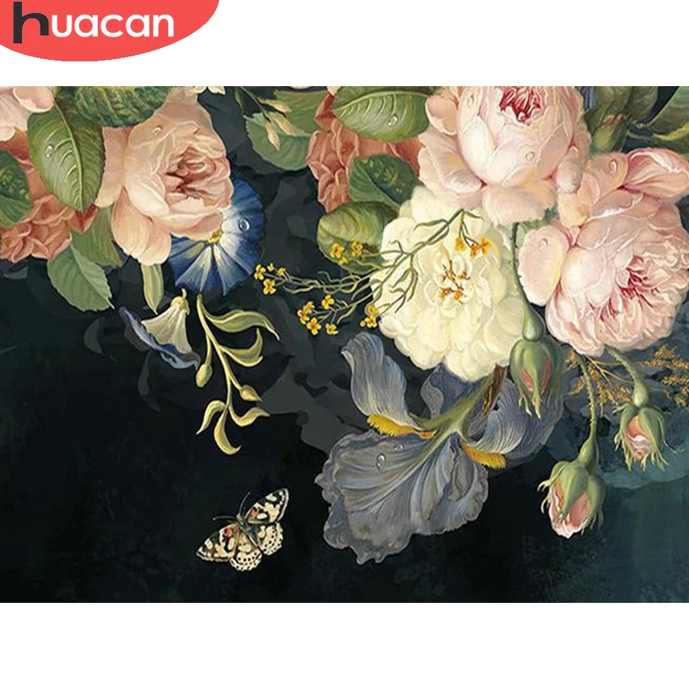 Полноразмернаякруглая Алмазная мозаика HUACAN с пионами 5D, алмазная живопись, цветочная картина стразы, украшение для дома