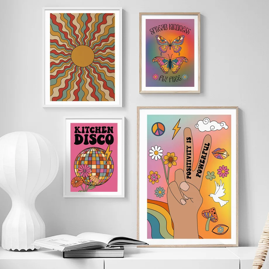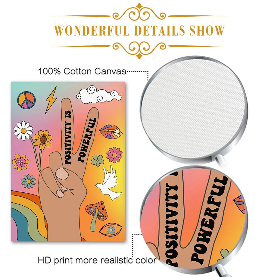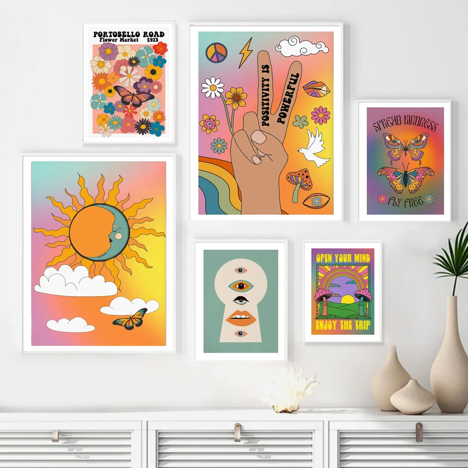 Психоделическая Ретро Картина на холсте в стиле бохо с радугой