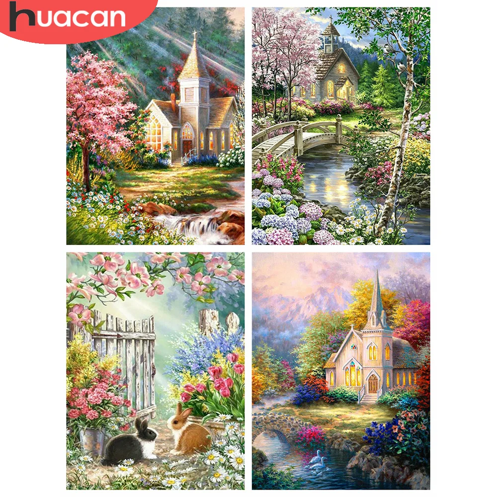 Алмазная вышивка HUACAN 5D, набор для домашней алмазной живописи, мозаика пейзаж модульные картины, украшение для сада и дома