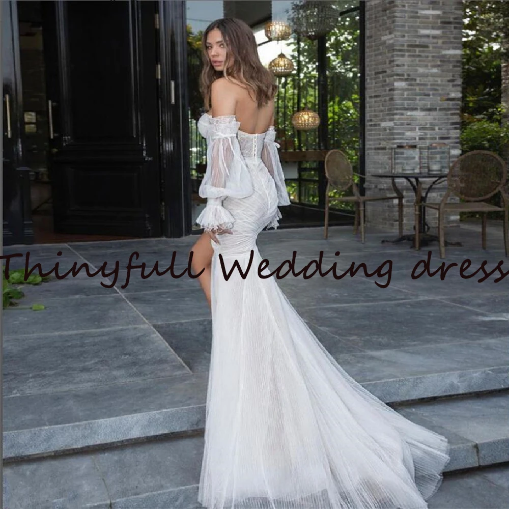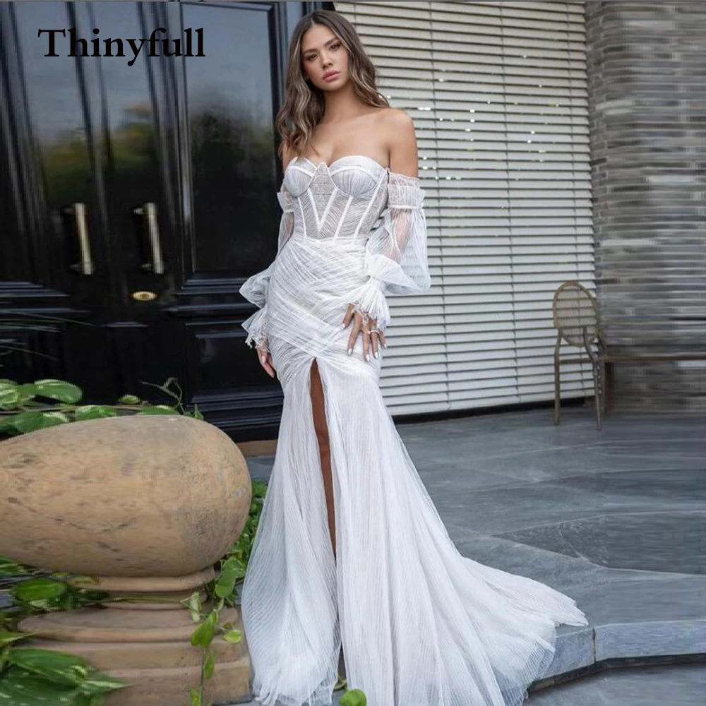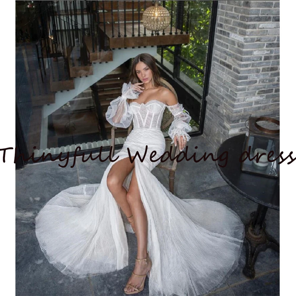 Новинка, Длинные свадебные платья с юбкой-годе в виде сердечек, 2022, пляжные платья невесты с длинным рукавом и разрезом сбоку, женское платье