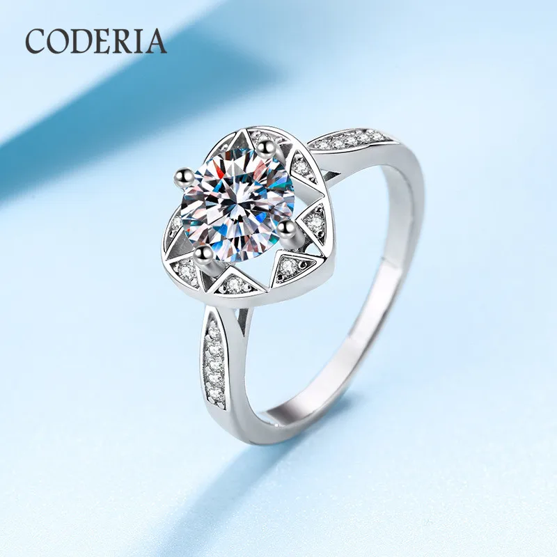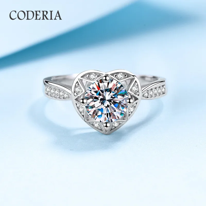 Серебро 925 пробы с платиновым покрытием PT950, 1 карат в форме сердца, мусанит, кольцо с бриллиантами, пройденное испытание, бриллиантовое роскошное Ювелирное Украшение
