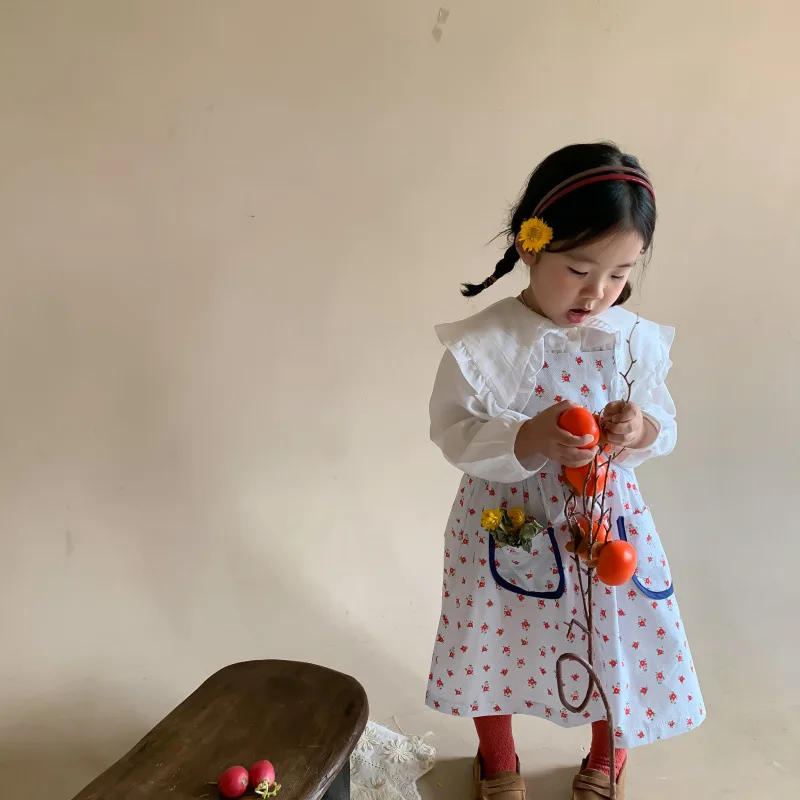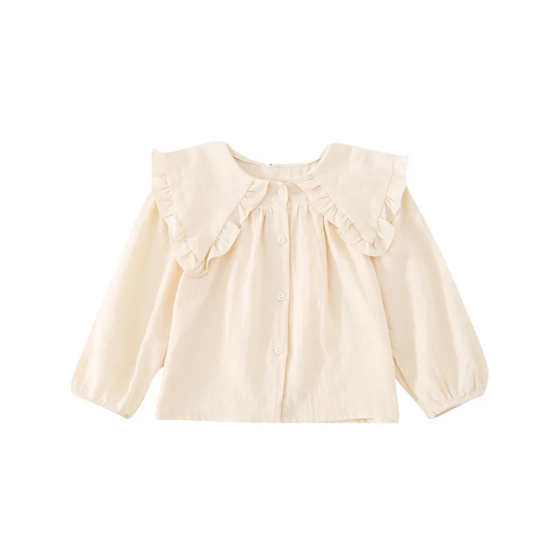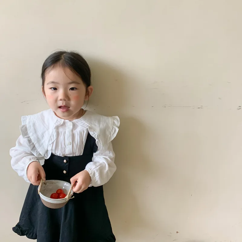 Детская одежда в Корейском стиле рубашка для девочек Новинка Весна 2022 детская белая рубашка свободная рубашка с большими лацканами для маленьких девочек Топ
