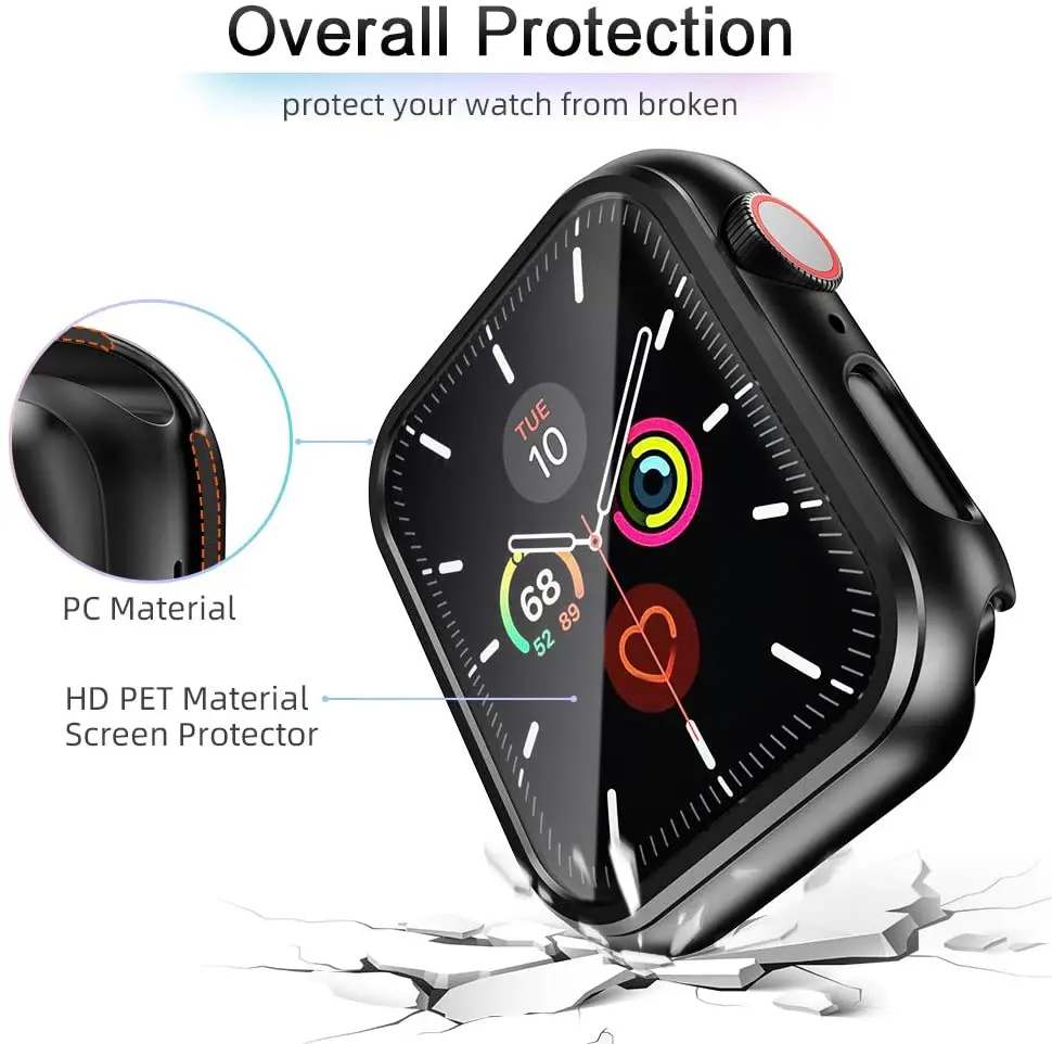 Закаленное стекло + чехол для Apple Watch 5 4 44 мм 40 мм iWatch 3 2 1 42 мм 38 мм защита экрана + чехол бампер аксессуары для apple watch