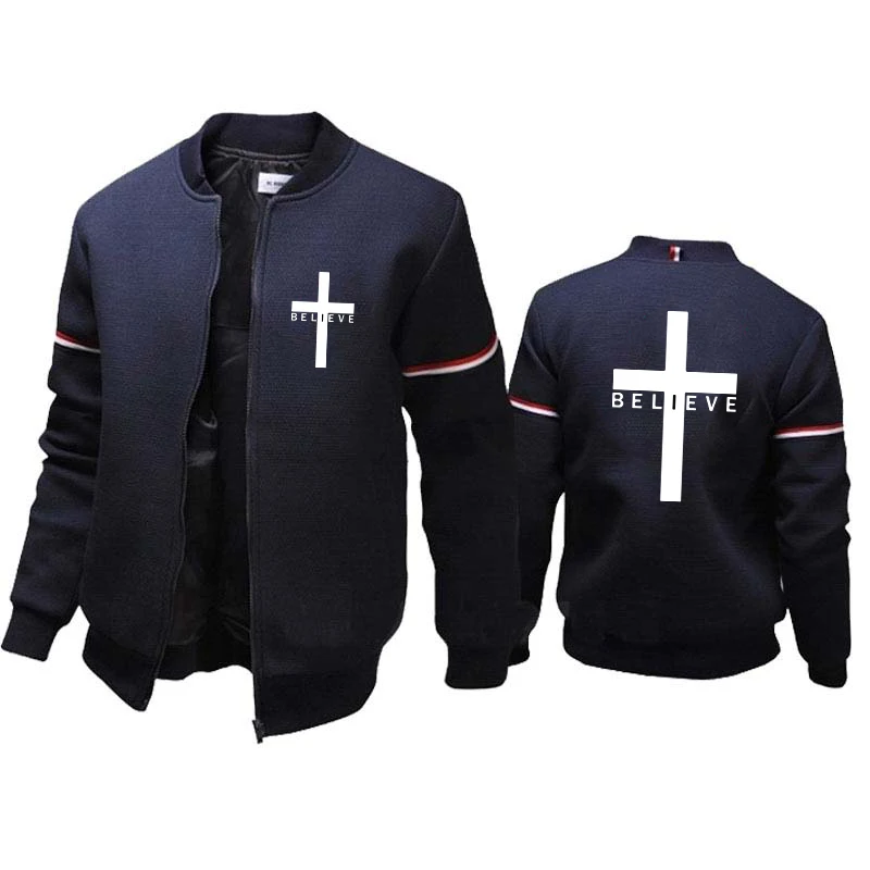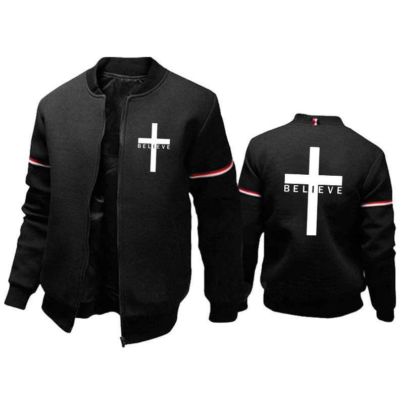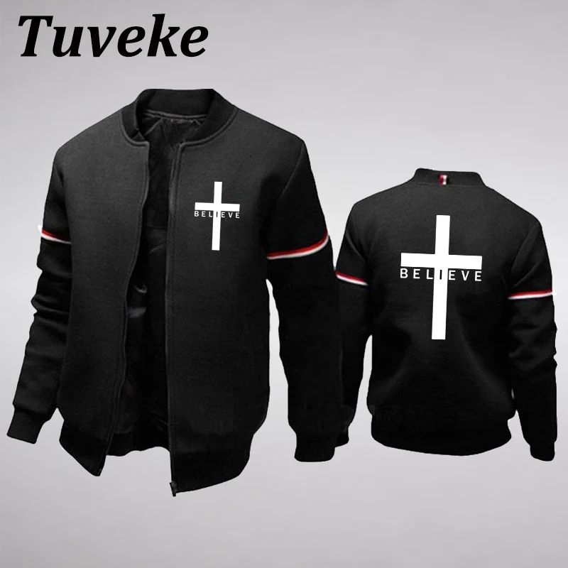Tuveke новейшая осенне-зимняя куртка с принтом Я верю в Иисуса Христа, спортивная бейсбольная куртка для улицы, повседневная спортивная куртка