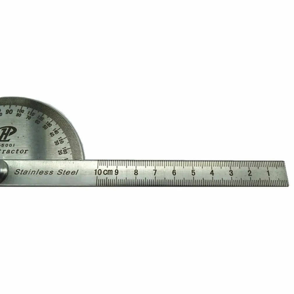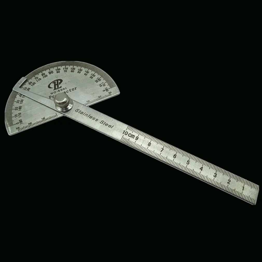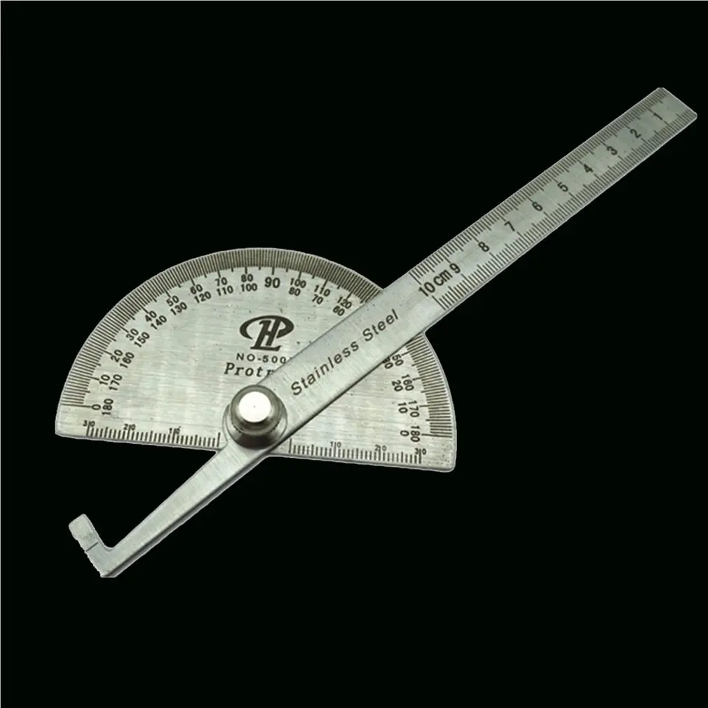 Транспортир из нержавеющей стали с круглой головкой, металлическая линейка с углом поворота, транспортир, квадратная угловая линейка, математический измерительный инструмент