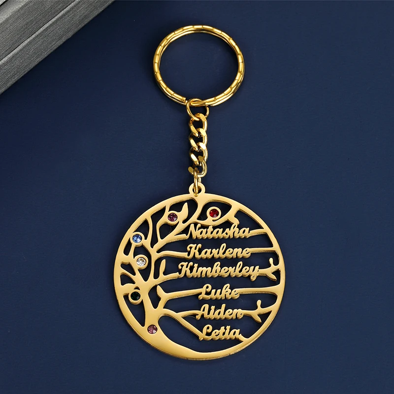 Индивидуальный брелок с деревом жизни 1-6 именами, камень на день рождения, имена семьи, брелок из нержавеющей стали, украшения для друзей, подарки