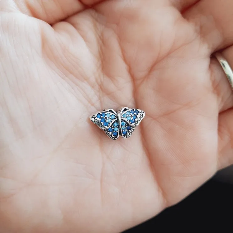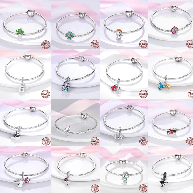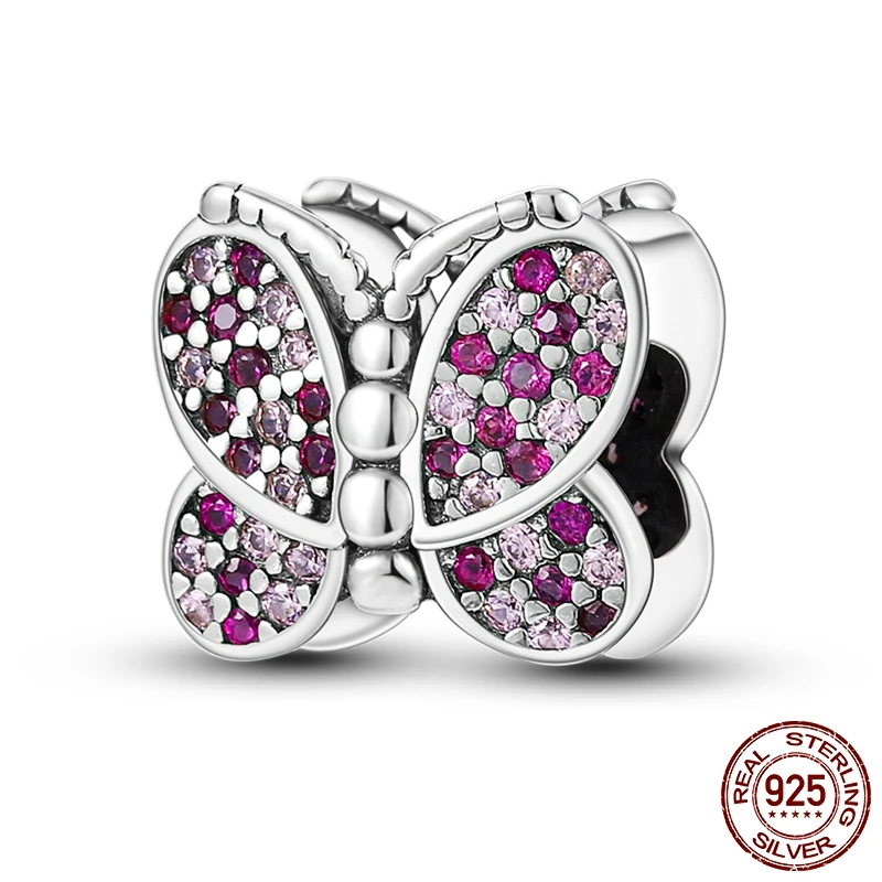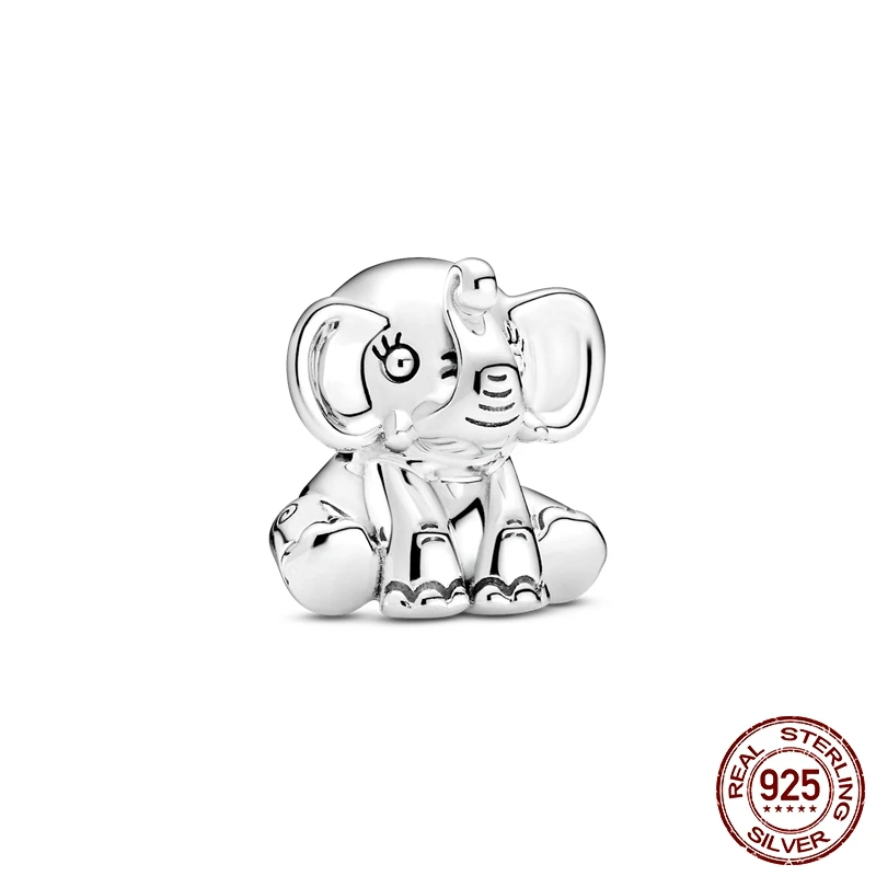 Бусина-Шарм из серебра 925 пробы для браслета, с цветами, лапой, слоном, лягушкой, бабочкой