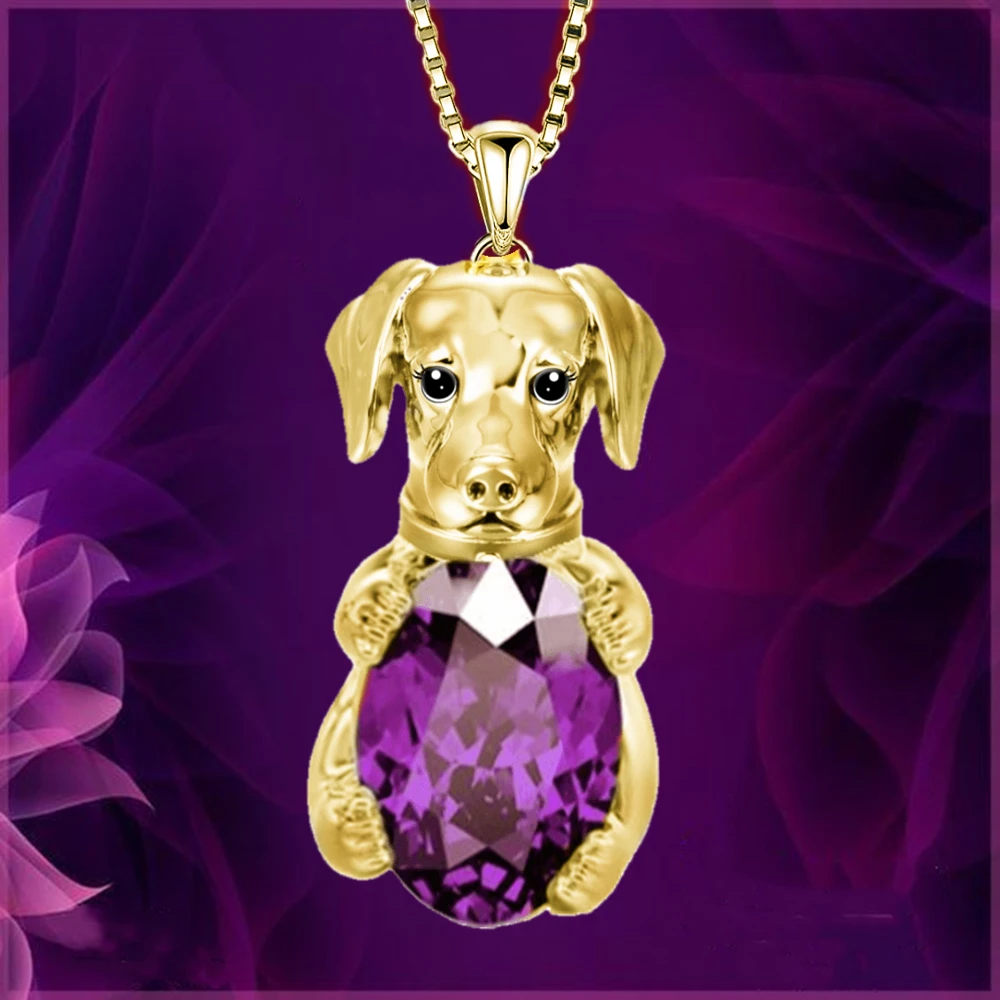 Модное позолоченное ожерелье с подвеской в виде собаки с кристаллами овальное ожерелье с натуральным аметистом и собакой ювелирные изделия в виде животных для женщин подарок на день Святого Валентина
