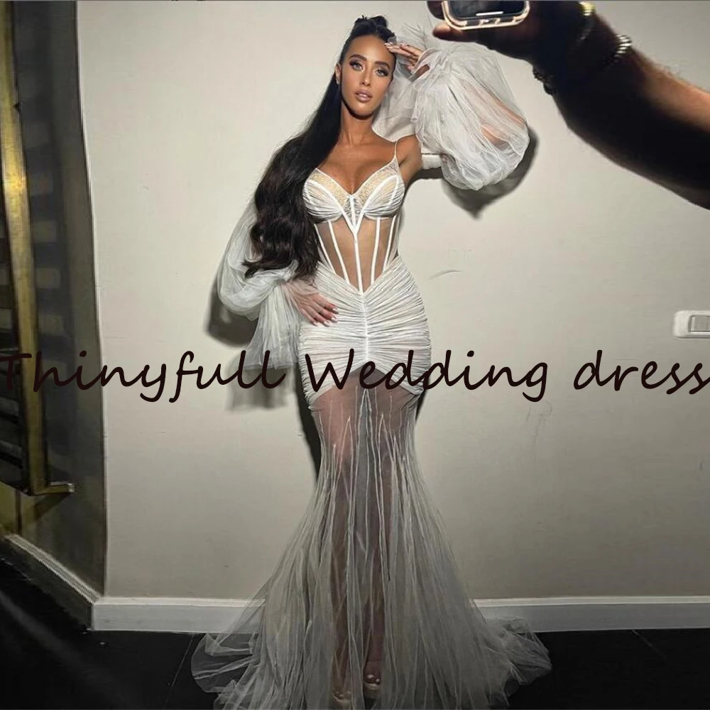 Женское кружевное свадебное платье-Русалка Thinyfull, с длинным рукавом и аппликацией в стиле бохо, пляжное платье невесты с длинным шлейфом