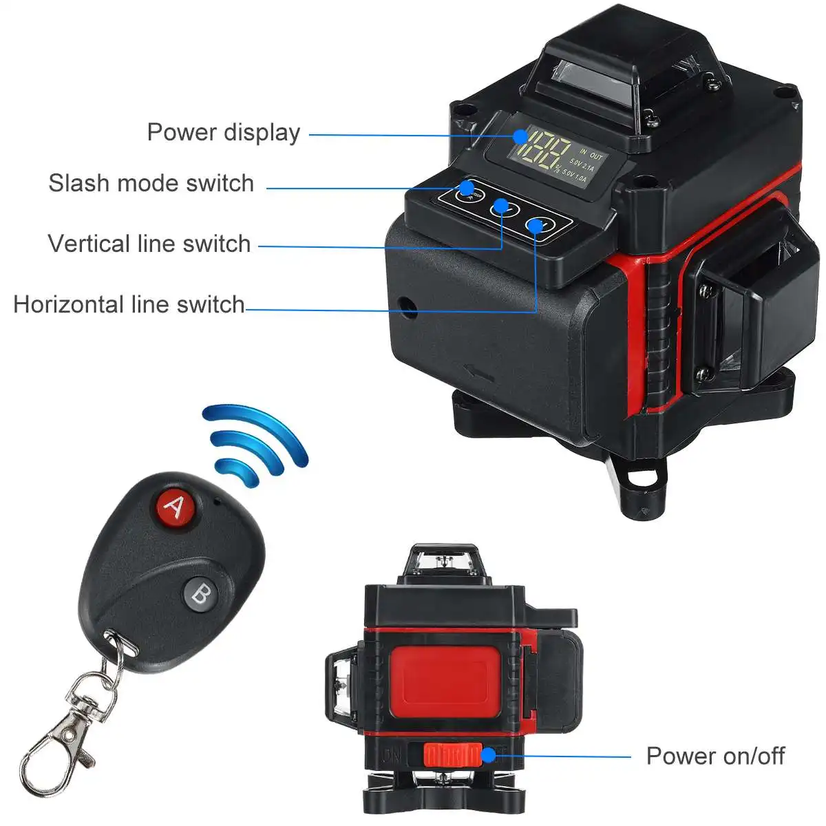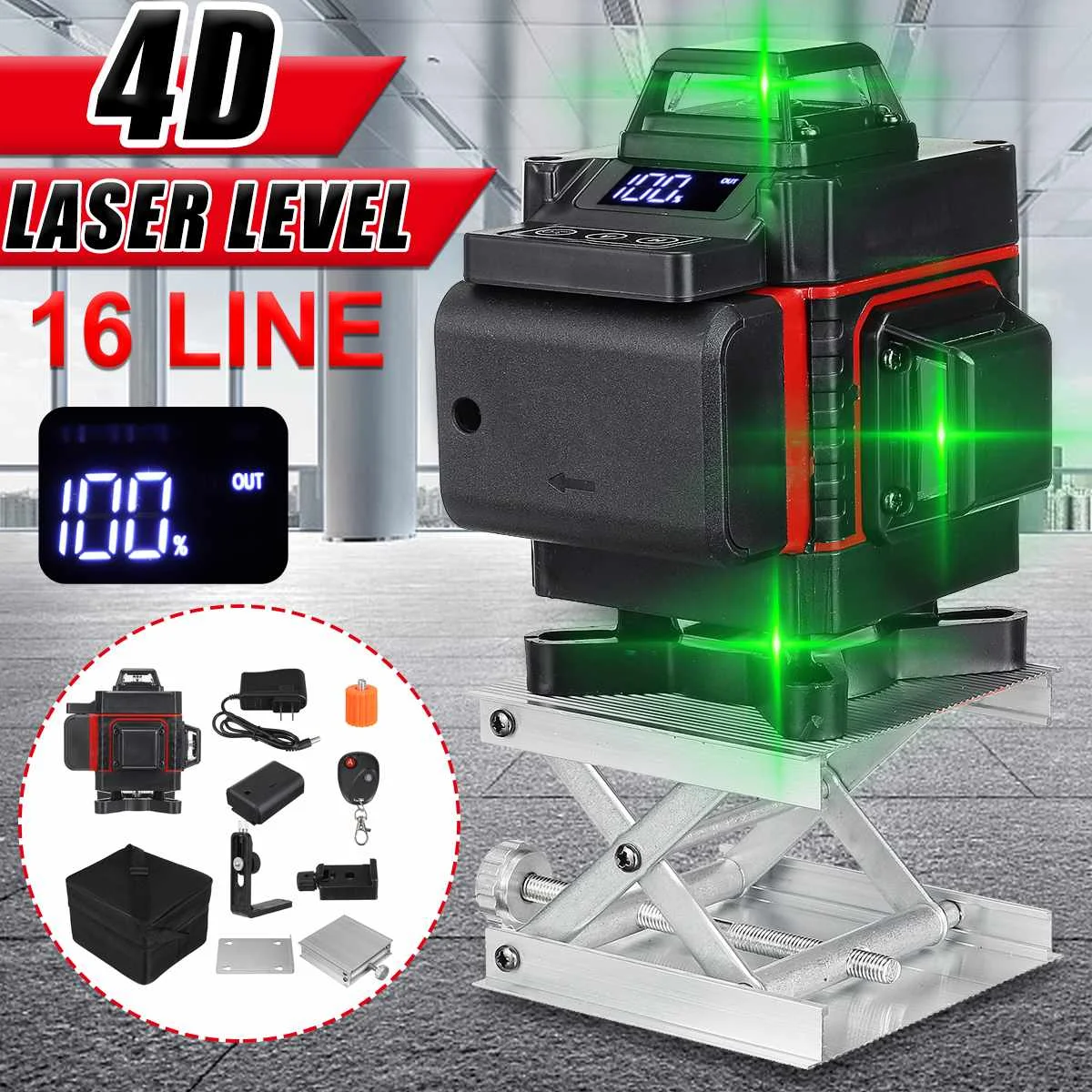 Самонивелирующийся лазерный уровень, 16 линий, 4D, зеленый лазер