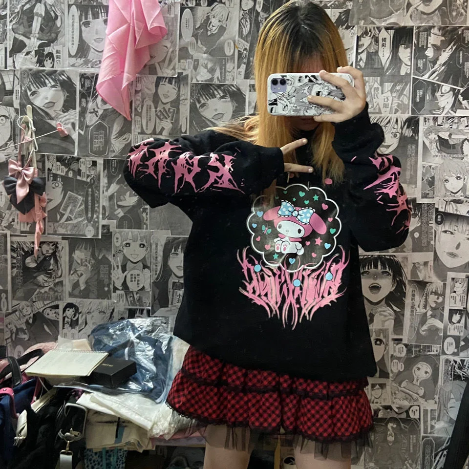Плюшевая Толстовка Sanrio My Melody с длинными рукавами, симпатичная бархатная хлопковая толстовка, Женский пуловер, толстовка, топы, одежда для девочек, подарок на день рождения