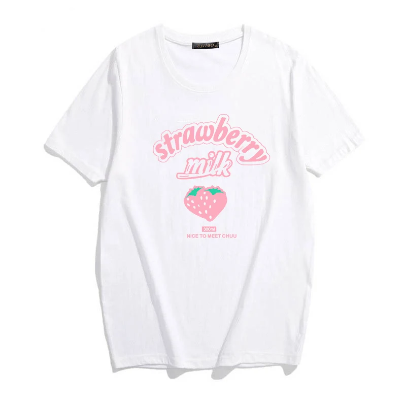 Японский милый клубничный молочный мультфильм милые девушки топы Ле...