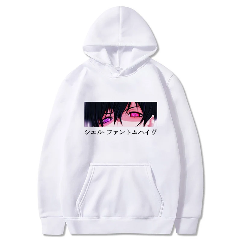 Японские пуловеры с изображением черного Батлера из аниме Kuroshitsuji Шира глаза, толстовка с капюшоном, свободная толстовка в стиле хип-хоп, уличная одежда в стиле панк, Женская Толстовка в стиле Харадзюку