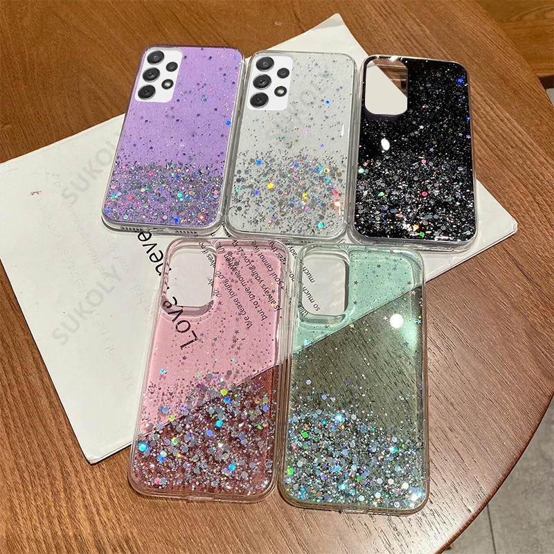 Блестящий чехол для Samsung Galaxy S20 FE S22 S21 Plus Note 20 Ultra A70 A50 A52 A72 A32 A51 A71 A13 5G M52, прозрачный мягкий чехол из эпоксидной смолы