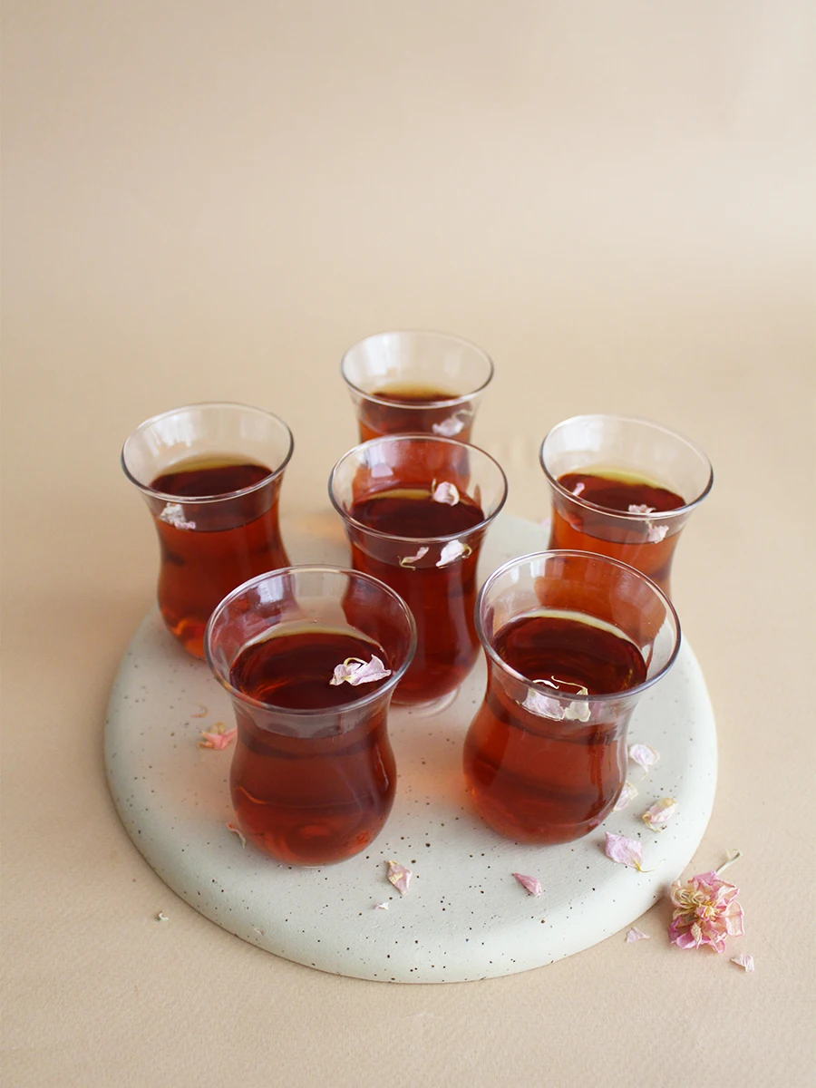 Предлагаем вам альтернативу привычной кружки для чая. Стеклянные чашки армуды - великое наследие чайных церемоний, оставшееся после османской империи. Они имеют ряд преимуществ перед обычными чайными парами и чашками. Главное достоинство стеклянных кружек армуду - это их форма и упрочнённое дно, которое не позволяет напитку остывать, в то время как широкая верхняя часть чашки позволяет чаю остужаться быстрее. Две температуры соединяются в середине кружки, рождая идеальный напиток. Вы никогда не обожжёте руки используя эти чашки, они сделаны из жаропрочного стекла высокого качества. За счет грушевидной формы чайные чашки удобно держать в руке, они филигранно помещаются между пальцами и не выскальзывают из них. Восточный чайный набор преобразит любой интерьер и поможет провести настоящую чайную церемонию не выходя из дома. Прозрачная, стеклянная чашка позволит насладиться не только вкусом, но и видом любимого напитка, чая или кофе. Набор чашек для чая 6 шт станет прекрасным подарком.