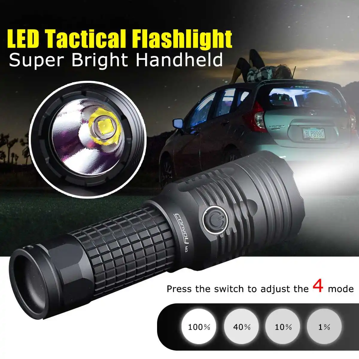 Посылка включает в себя:1 x Convoy M3 XHP70.2 4300LM фонарик с высоким люменом(Без аккумулятора)