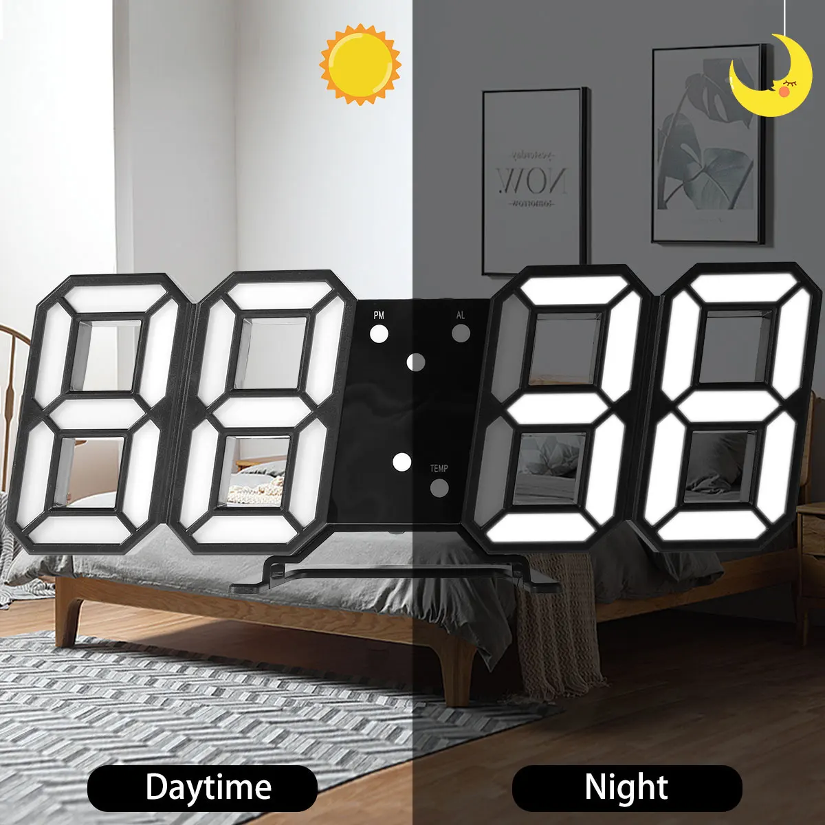 3D светодиодные настенные часы, современные цифровые часы-будильник, настольные часы с 3 автоматической регулировкой уровня яркости для украшения дома
