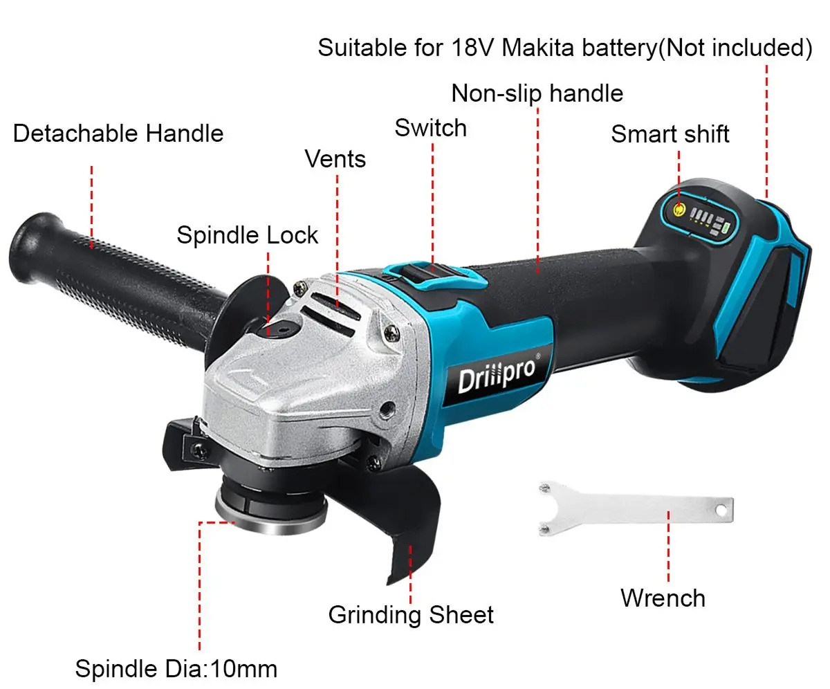 1200 Вт800 Вт 125 мм бесщеточная электрическая угловая шлифовальная машина 4 скорости режущий станок DIY деревообрабатывающие электроинструменты для Makita с батареей 18 в