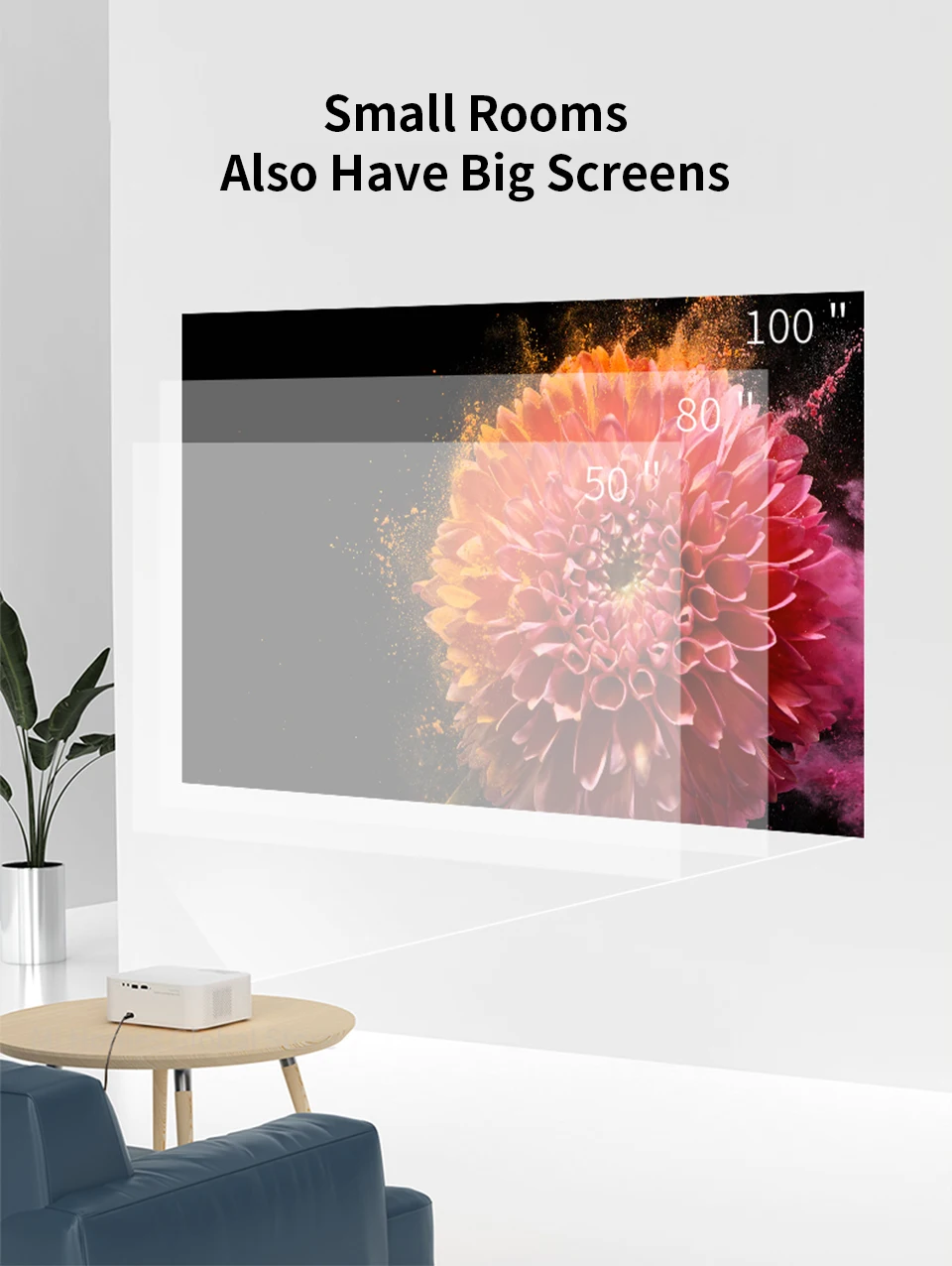 1,35: 1 Коэффициент броска, подходит для домашнего пространства, 3 метра может достигать 100 дюймов