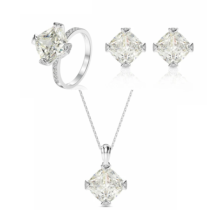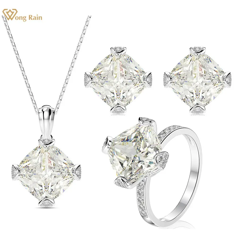 Wong Rain 100% Стерлинговое Серебро 925 пробы, серьги/кольца/ожерелье из муассанита, ювелирные наборы для свадьбы, помолвки, оптовая продажаОсновной камень: создан МуассанитРазмер кольца: 11*11 ммРазмер камня серьги: 8*8 ммКулон камень: 11*11 мм
