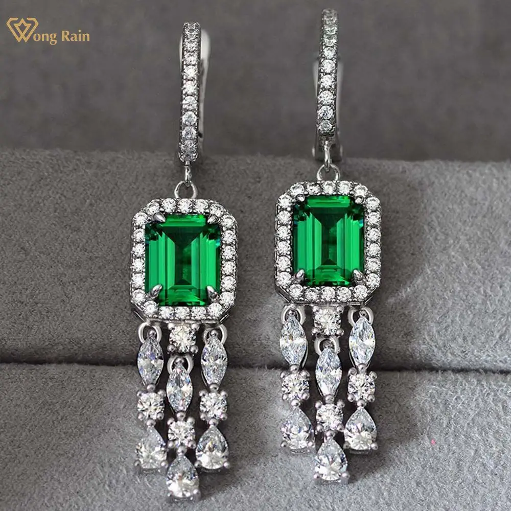 Wong Rain, 100% 925 пробы, серебро, изумруд, создан, моиссанит, драгоценный камень, Свадебная вечеринка, кисточка, висячие серьги, хорошее ювелирное изделие