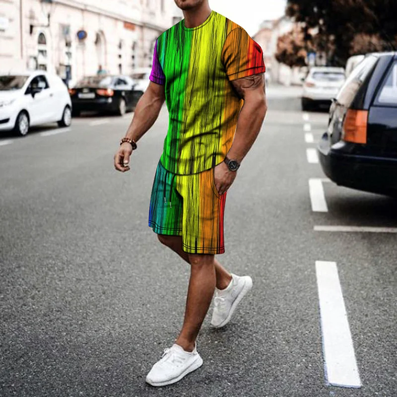 Модные мужские футболки и шорты, повседневный костюм из двух предметов в пляжном стиле, модный брендовый топ с круглым вырезом и короткими рукавами и пляжные брюки