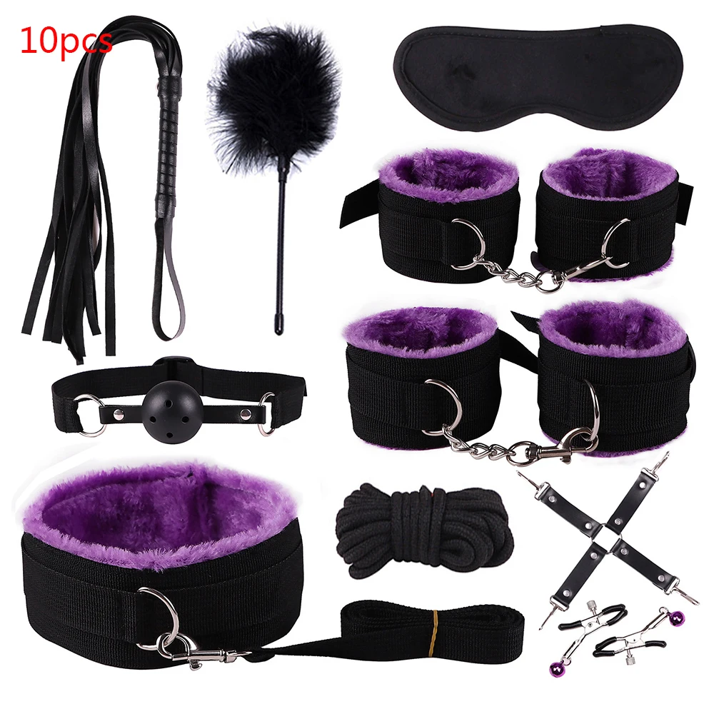 Сексуальные кожаные наборы для БДСМ, плюшевый набор для сексуального бондажа, наручники, секс-аксессуары, зажимы для сосков, секс-игрушки для пар, экзотические аксессуары