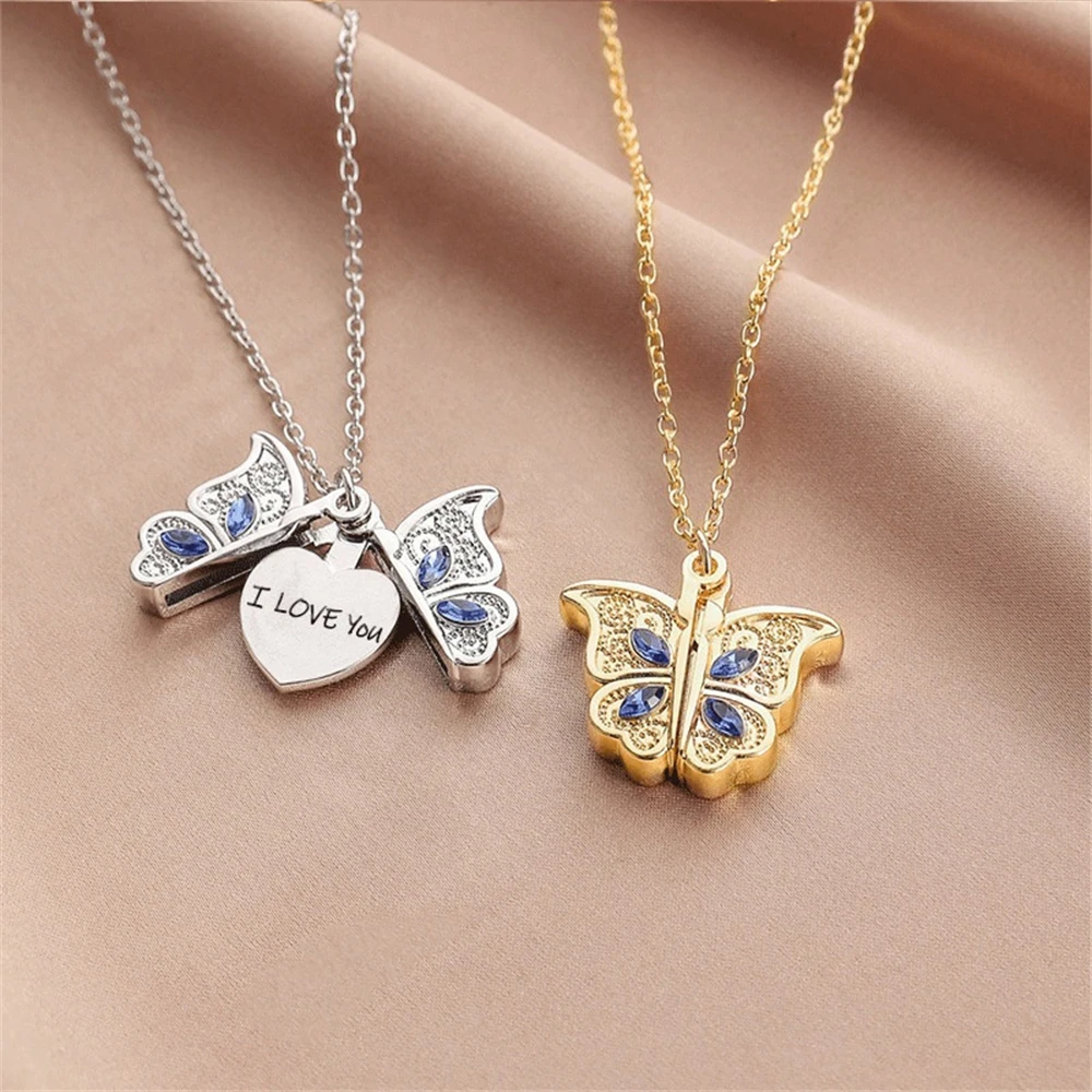 Элегантное ожерелье с кулоном в виде бабочки и голубого кристалла "I Love You", изысканное модное женское ожерелье, аксессуары для вечеринок, подарок на годовщину