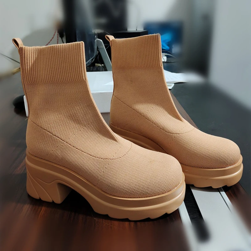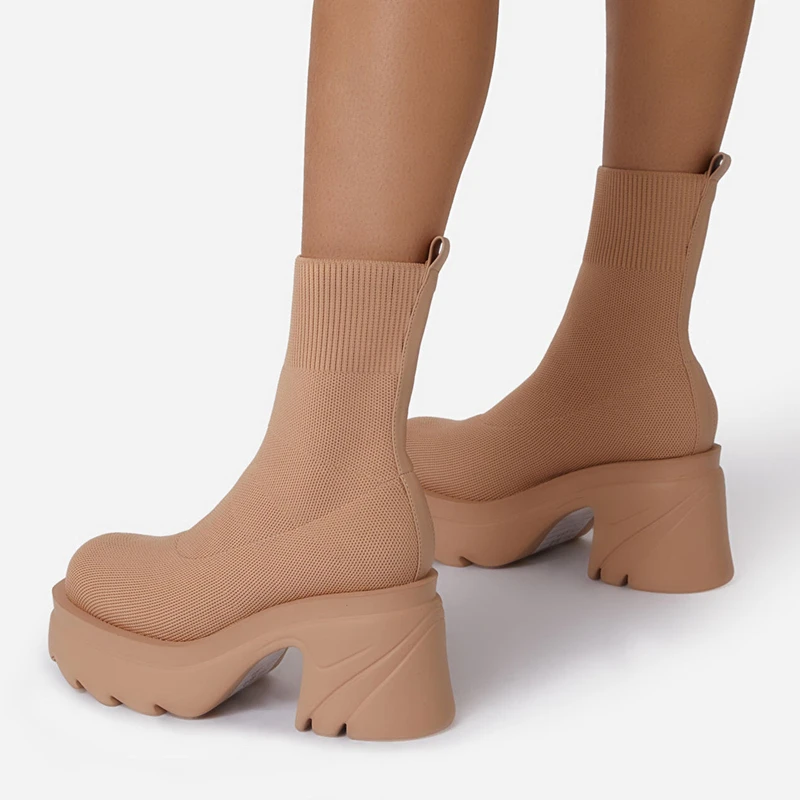 Женские ботинки-носки на платформе, светло-коричневые сапоги из эла...