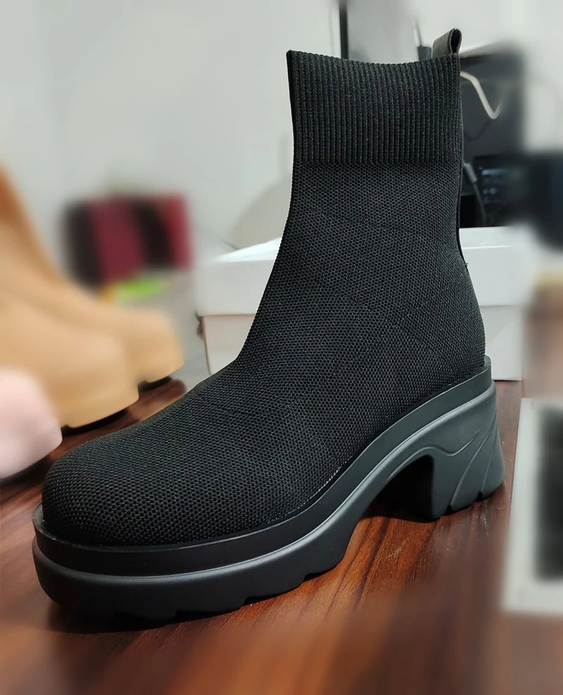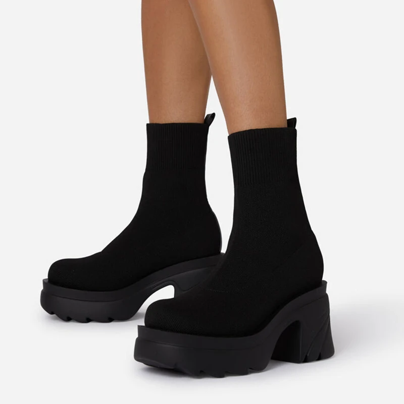Женские ботинки-носки на платформе, черные ботинки из эластичной тк...
