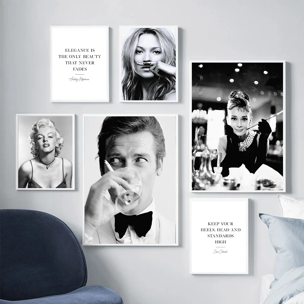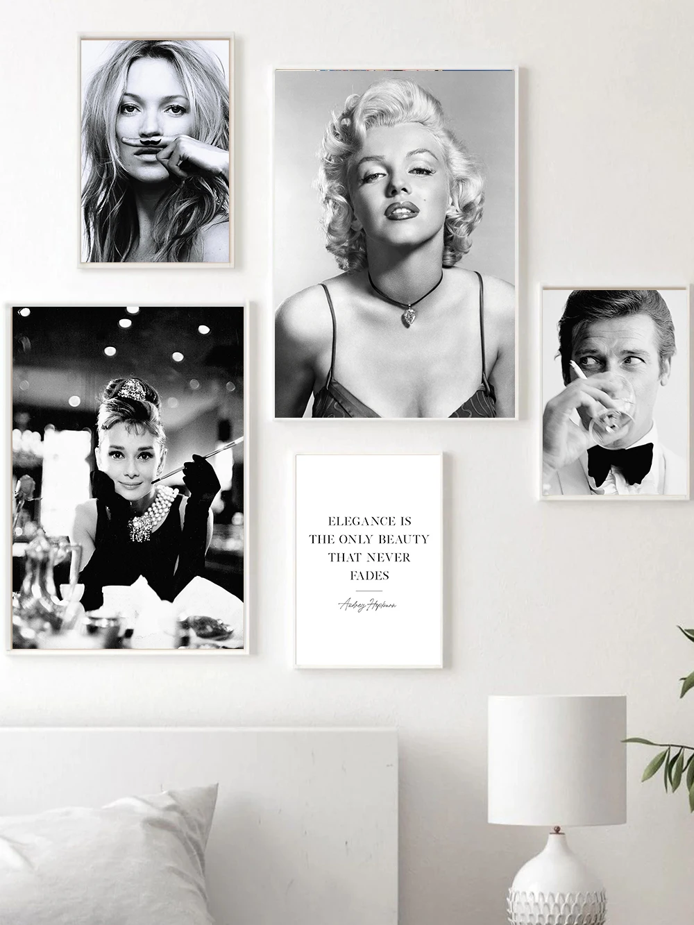 Постер Одри Хепберн, Мэрилин Монро, плакат, черно-белая Настенная картина, холст, живопись, украшение для гостиной, домашний декор, картина
