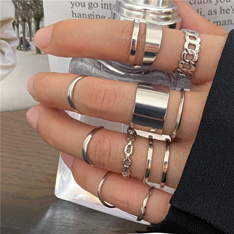 Комплект колец в стиле хип-хоп для женщин и девушек, тонкие кольца ...