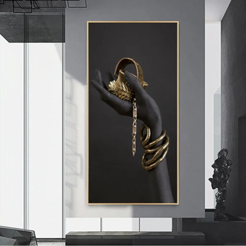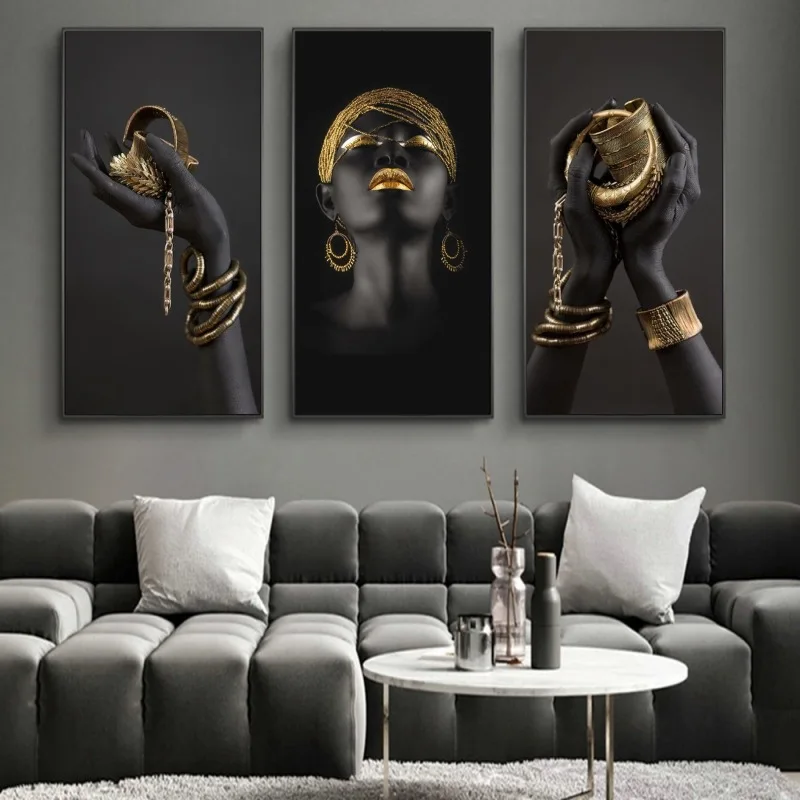 Африканские черные руки, золотые украшения, Картина на холсте, Пост...
