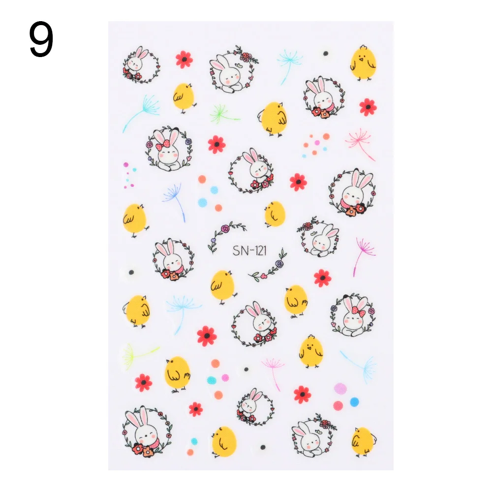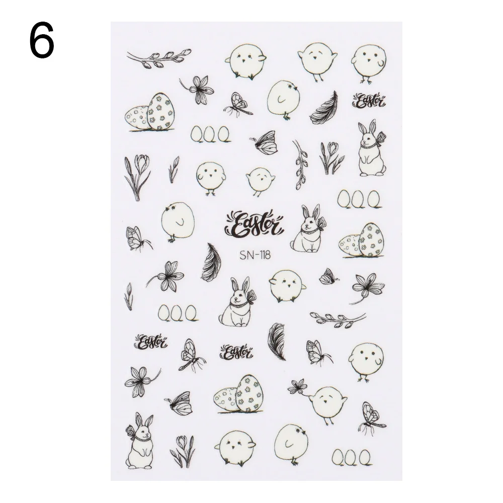 Пасхальные наклейки для ногтей, светящиеся наклейки для ногтей в виде цыплят, яйца, зайчика, кролика, зайца, наклейки для ногтей, 3D наклейки для ногтей, аксессуары