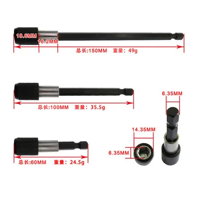Быстросъемная Электрическая дрель с шестигранным хвостовиком 14 дюйма, без магнитного держателя отвертки, 60 мм, 100 мм, 150 мм, быстросъемный хвостовик, электроинструмент