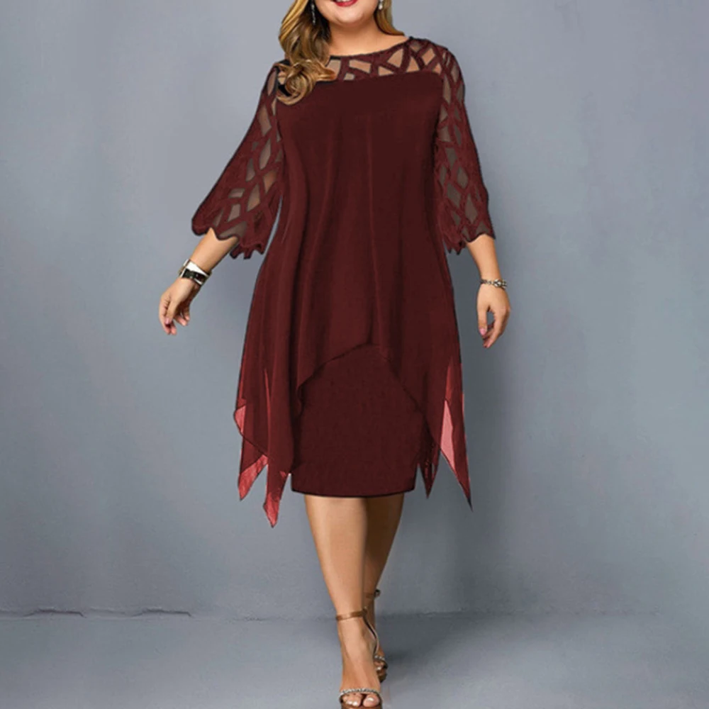 Женское шифоновое платье с кружевом и рукавом три четверти