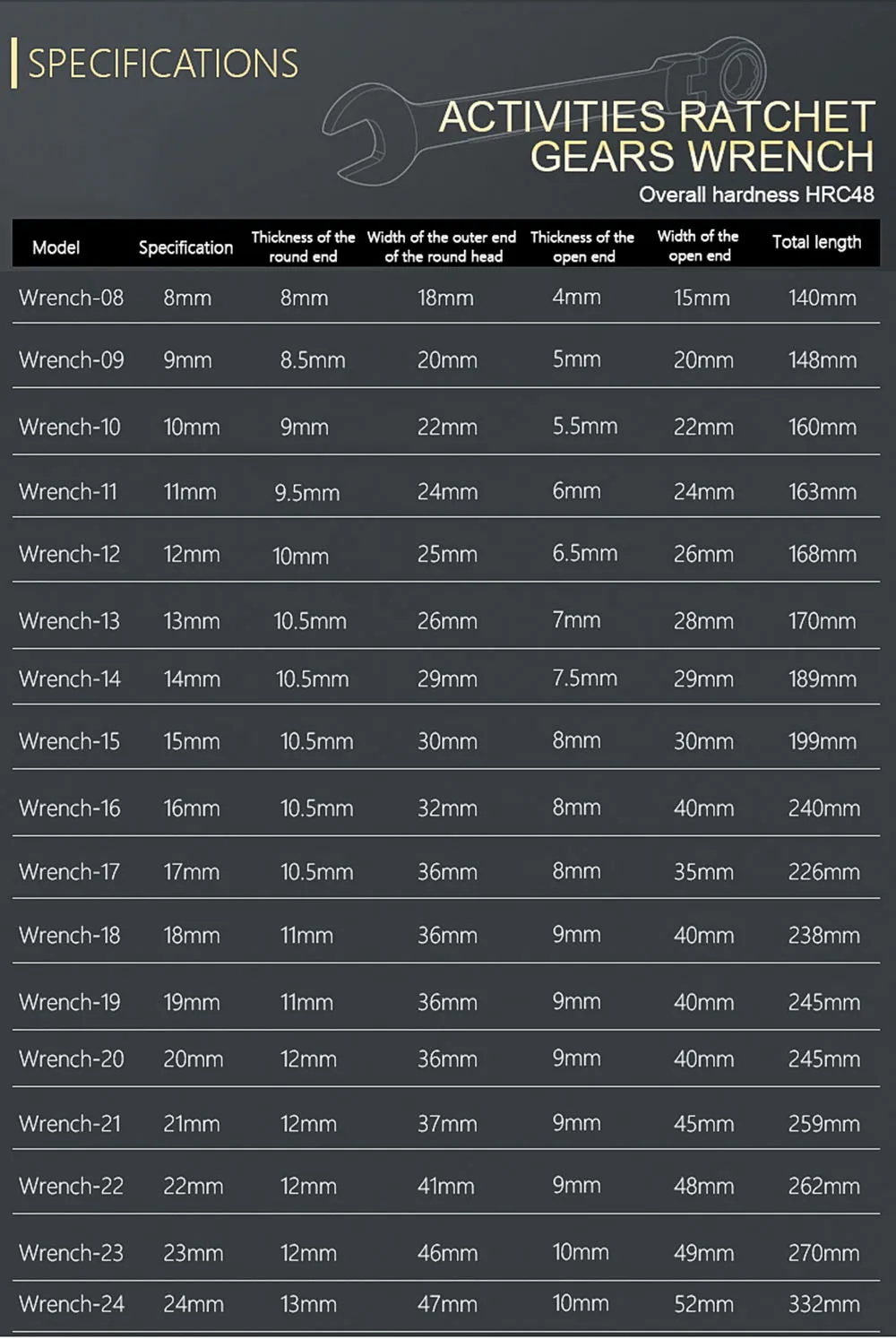 Метрический ключ с гибкой головкой, ключ с трещоткой из хромованади...