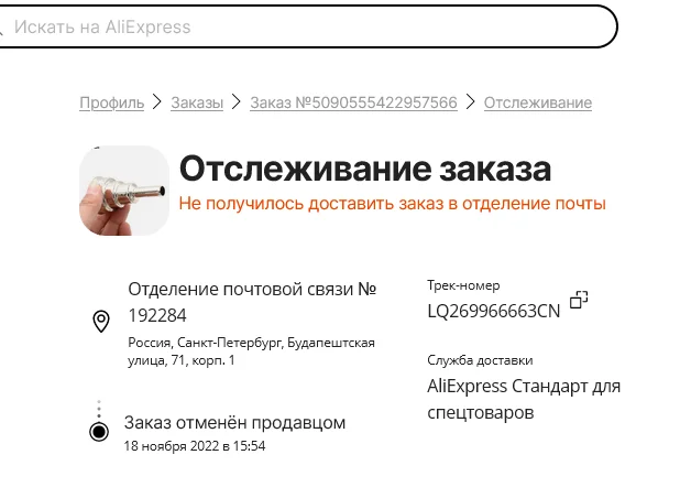 Страна: RU Доставка: Cainiao Super Economy 18.11.2022