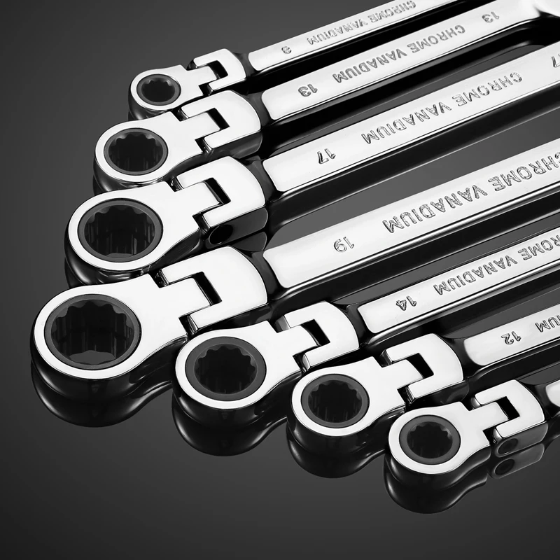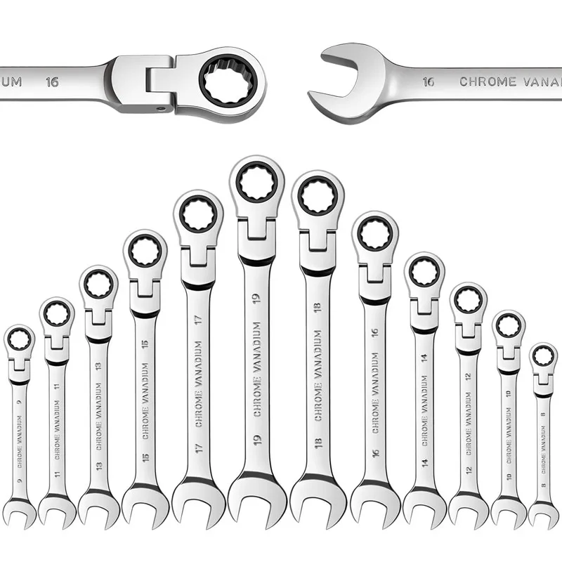 Набор гаечных ключей с трещоткой, комплект комбинированных инструментов из хромованадиевой стали с гибкой головкой