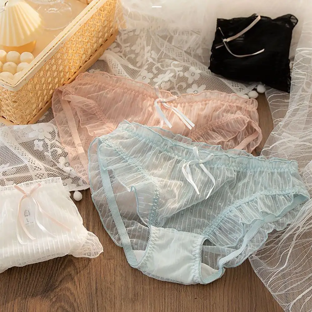 Трусики для женщин, сексуальное кружевное нижнее белье с бантом, прозрачные трусы с заниженной талией, женские дышащие сетчатые трусы, нижнее белье