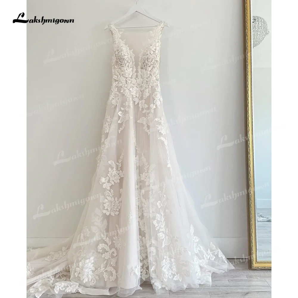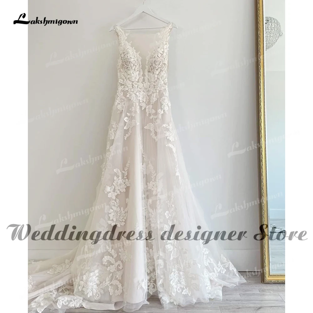 Женское свадебное платье Lakshmigown, Пляжное Платье-трапеция с V-образным вырезом и кружевной аппликацией, 2022