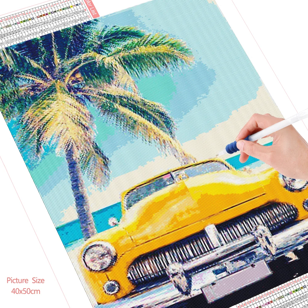 Алмазная живопись HUACAN, летняя полноразмернаякруглая мозаика с рисунком автомобиля, морской пейзаж, креативные хобби, домашний декор
