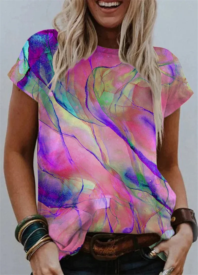 Женская футболка с коротким рукавом и круглым вырезом, с градиентным 3D принтом