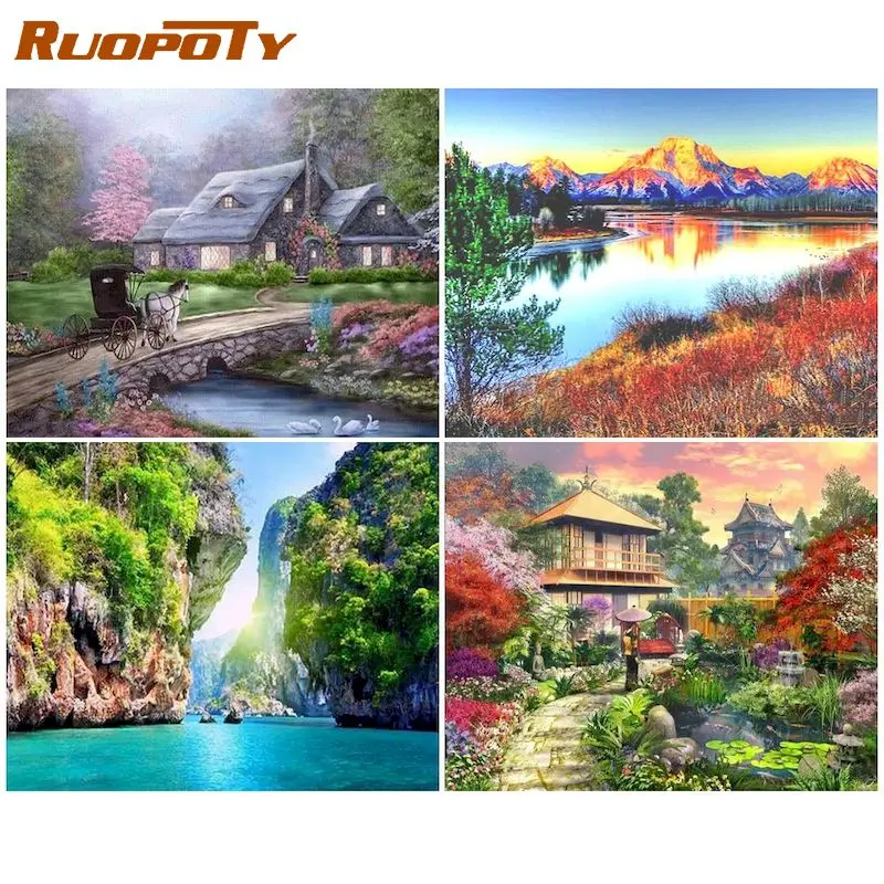 RUOPOTY алмазная живопись пейзаж Вышивка крестиком 5D DIY мозаика в...