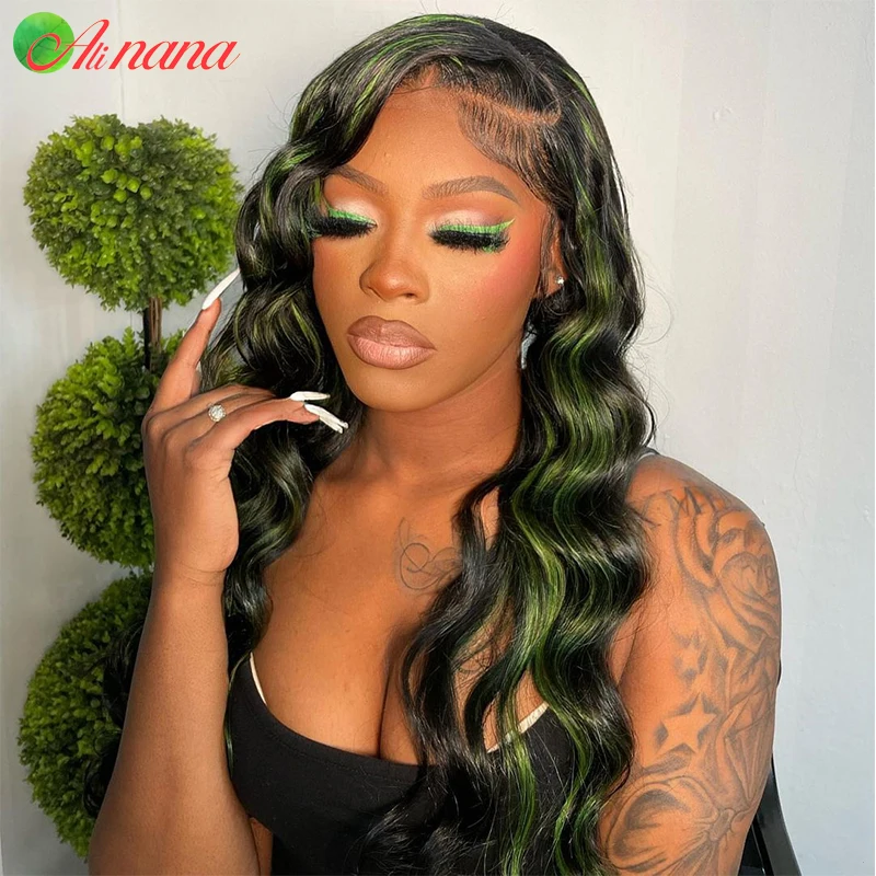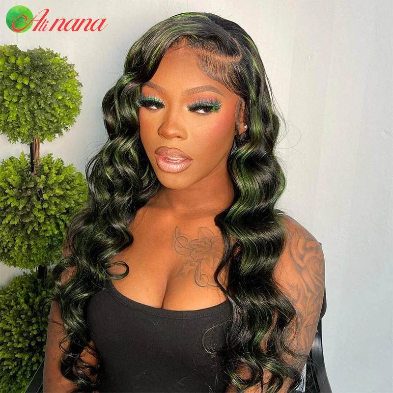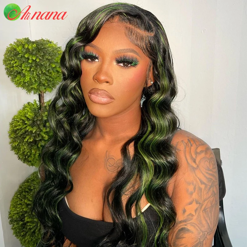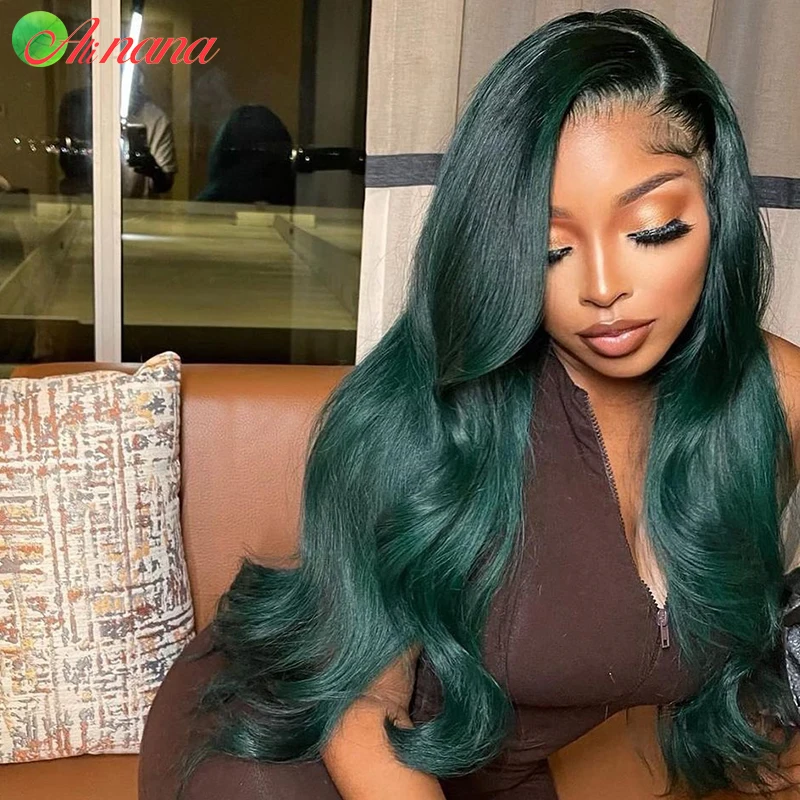 Темно-зеленый волнистый прозрачный парик из бразильских человеческих волос, предварительно выщипанные парики 13x4 на сетке, парик с фронтальной сеткой, парики без повреждений