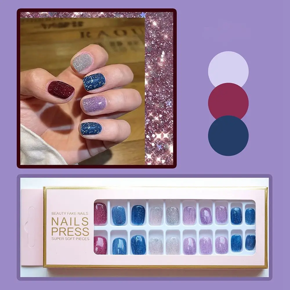 24 шт. короткие накладные ногти золотой дизайн искусственные накладные ногти балерины с клеем полное покрытие накладные ногти нажимные ногти