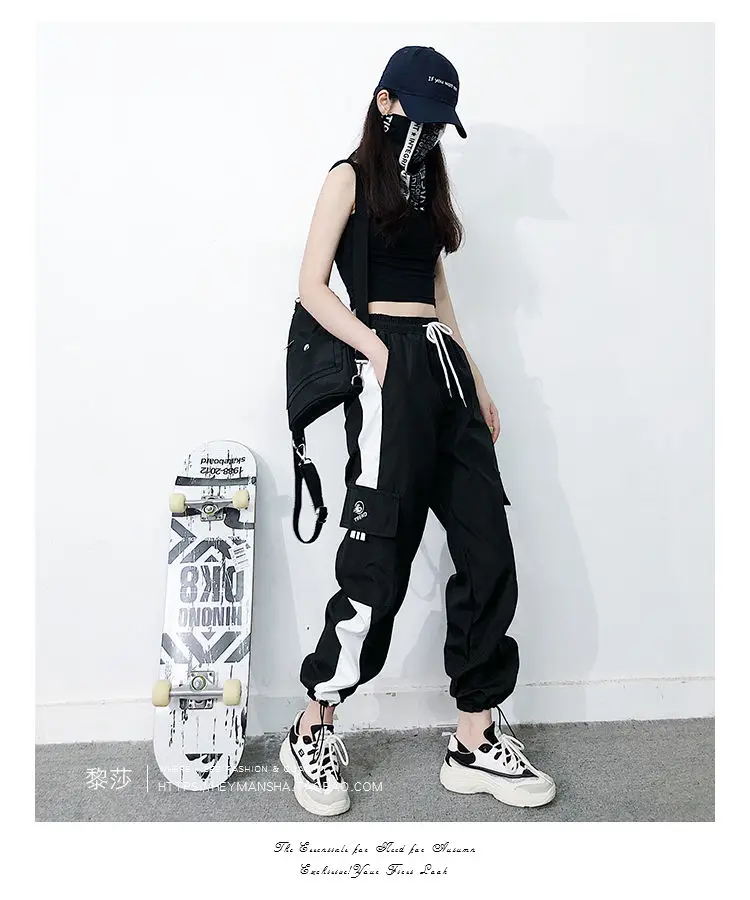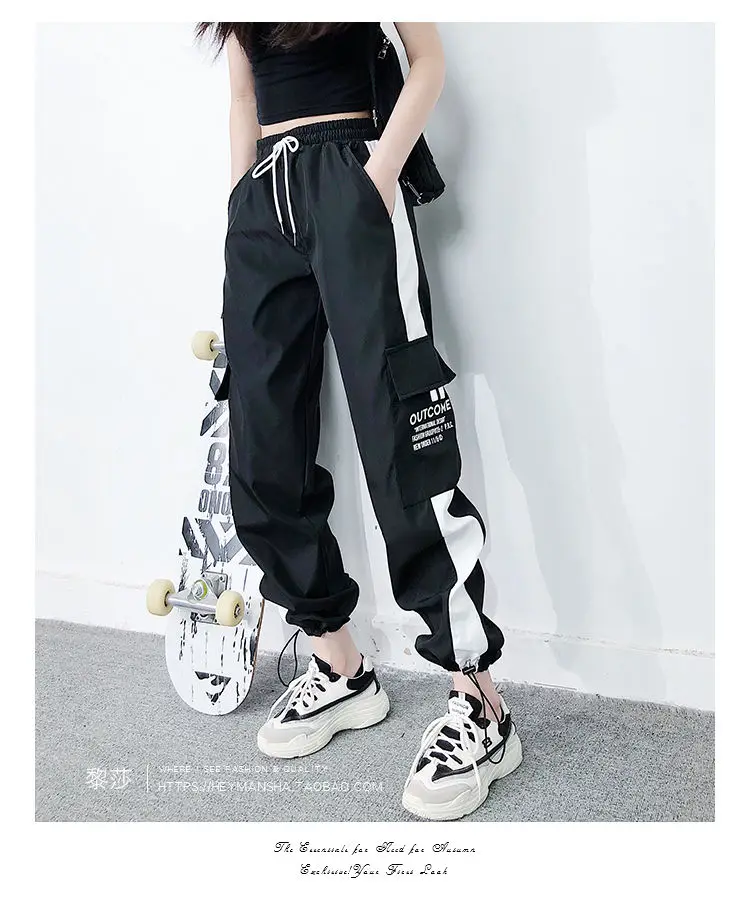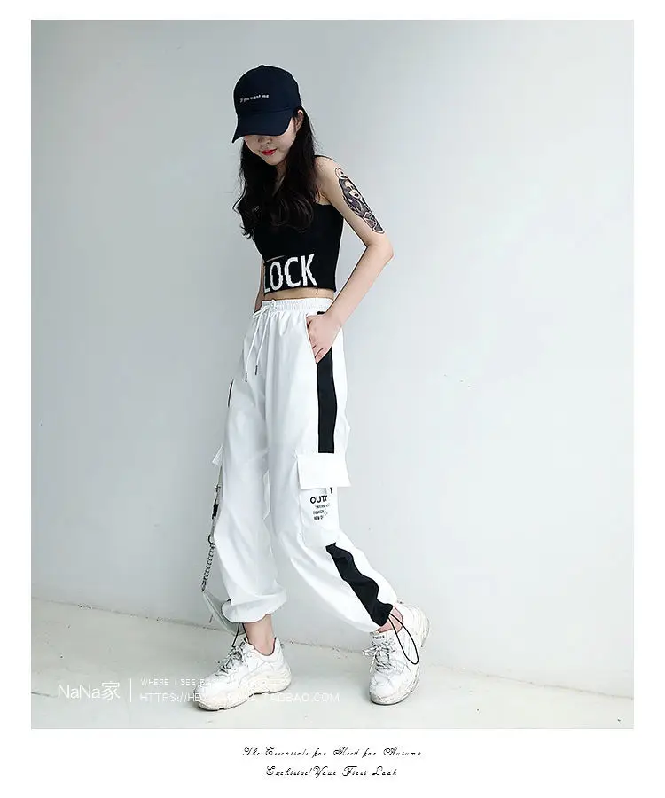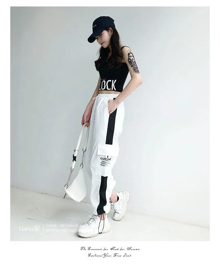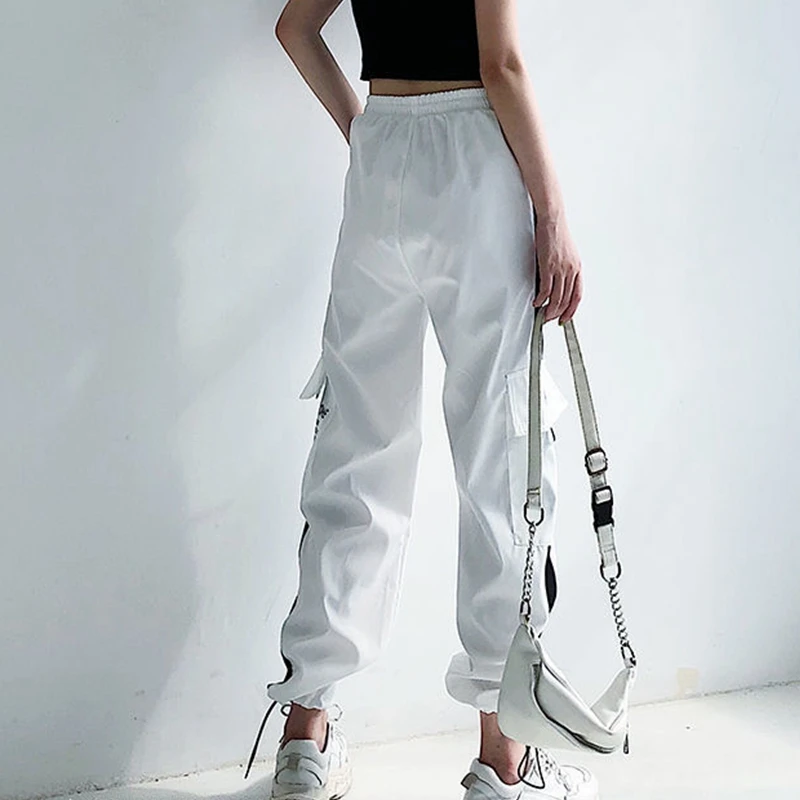 Women argo pants featuresWhite Black Pants Sport Jogging Hip Hop Elastics High Waist Streetwear Korean