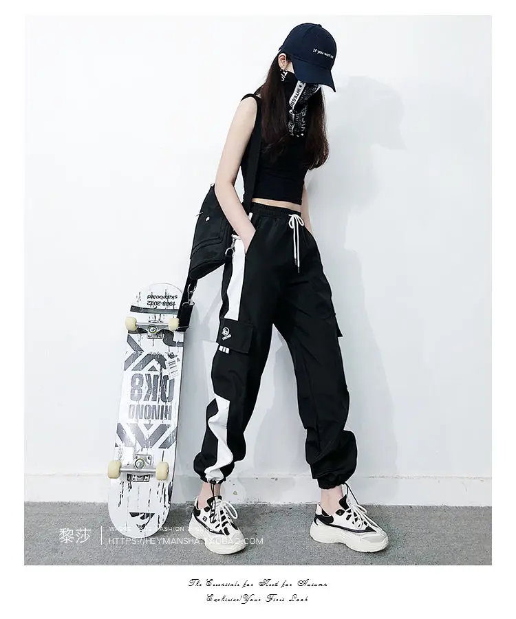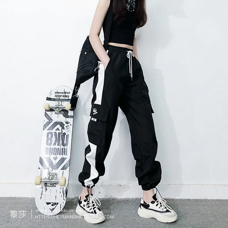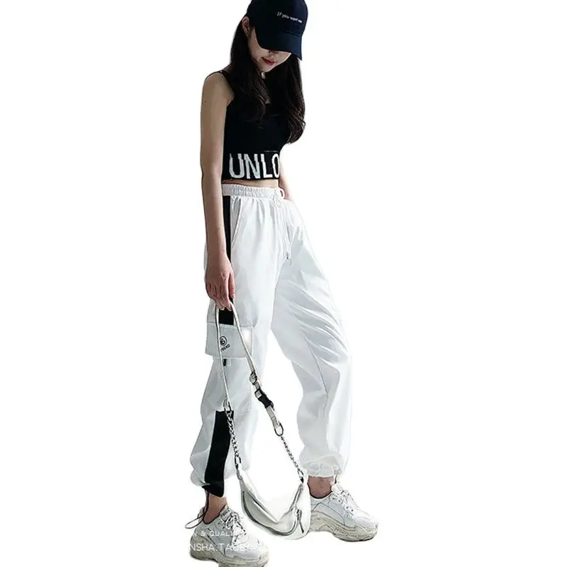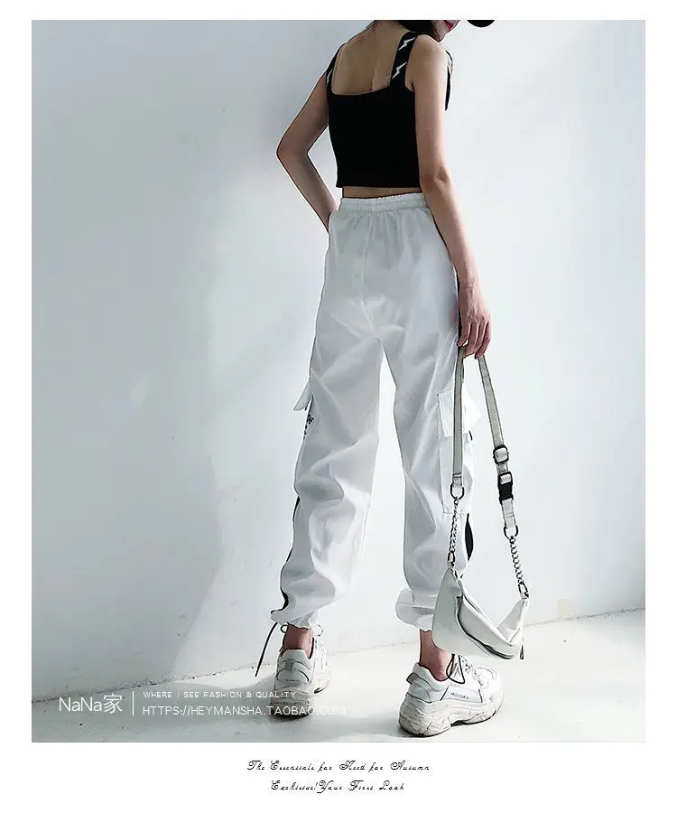 Джоггеры женские в стиле хиппи, спортивные брюки, мешковатые брюки-карго белого и черного цвета, спортивные штаны для бега, хип-хоп, с эластичной высокой талией, уличная одежда в Корейском стиле