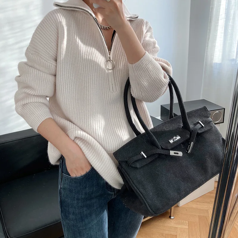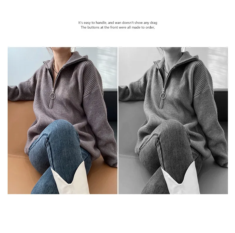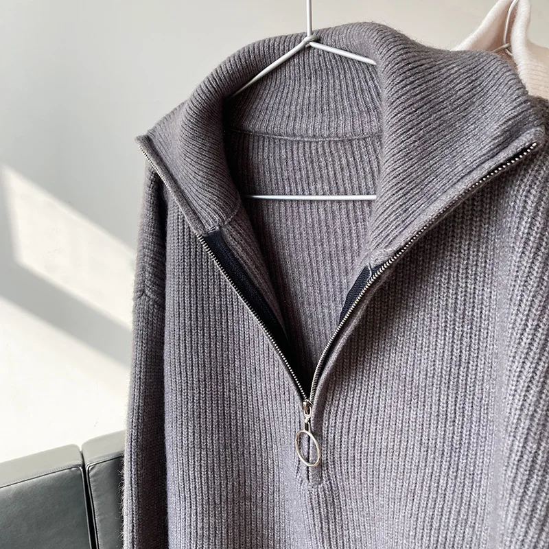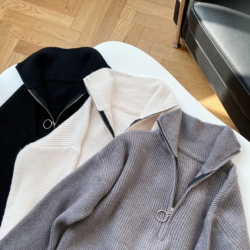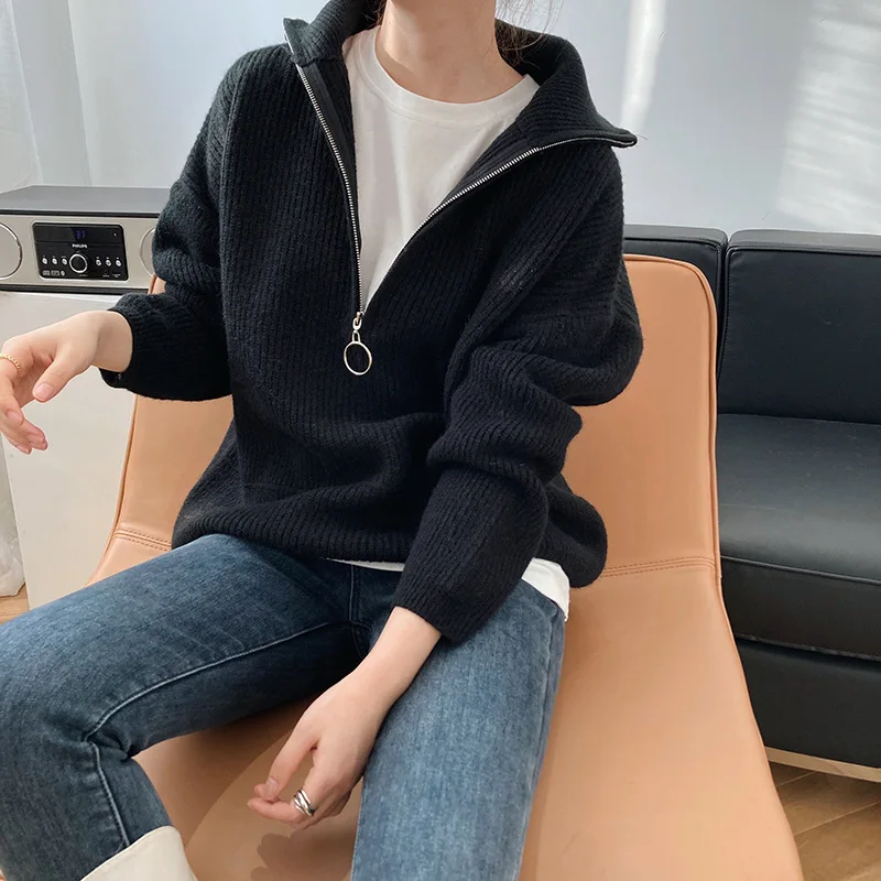 Женский свитер с воротником-черепахой, на молнии, с отложным воротником, женские кашемировые мягкие свободные вязаные пуловеры, толстый джемпер оверсайз