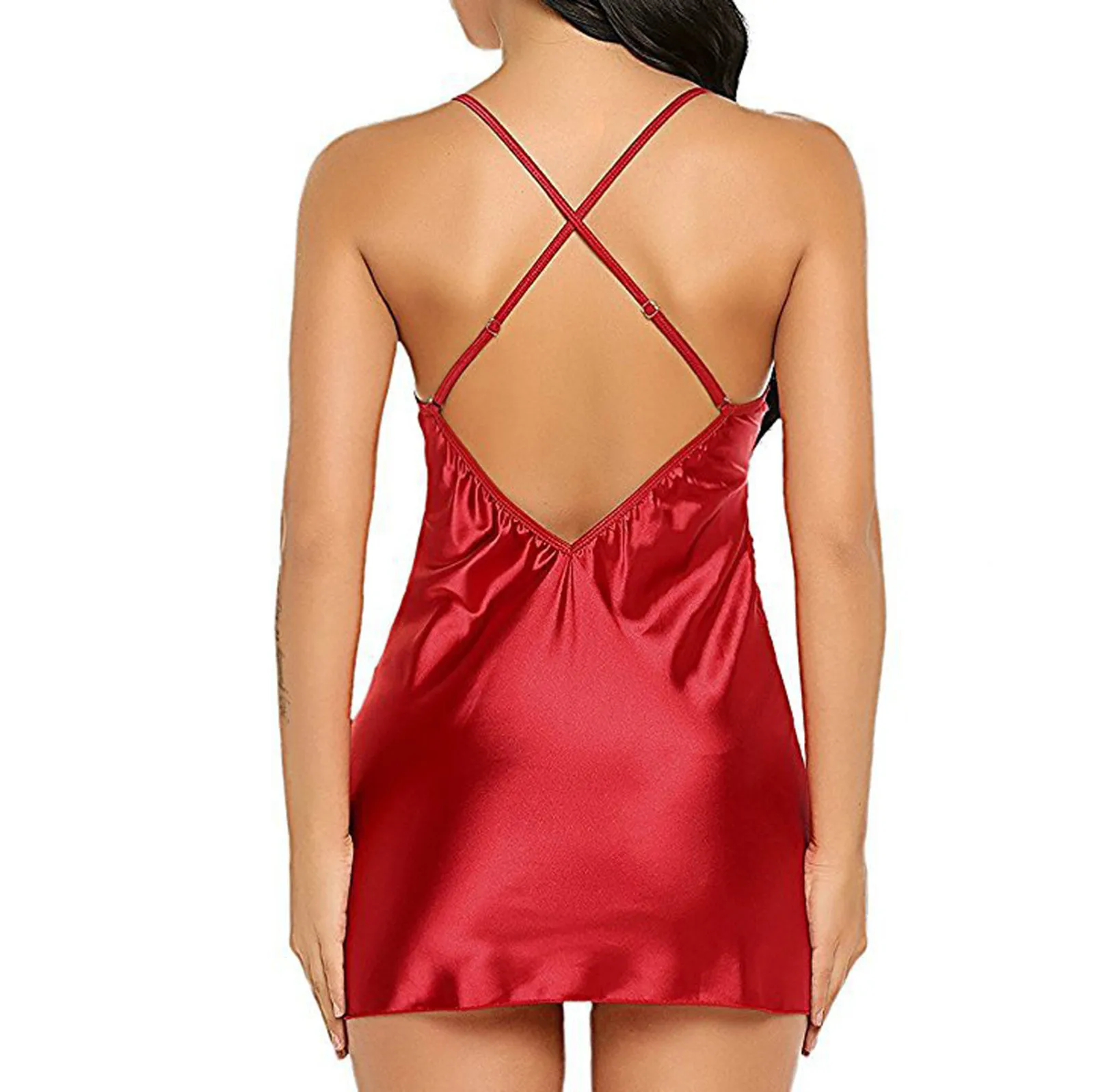 Женское рождественское платье для сна, сексуальная шелковая ночная ...